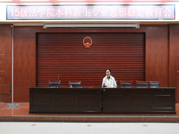 为帮助新生了解所学专业的师资状况、办学条件、课程设置、学习方法,清楚所学专业的发展状况、市场需求,就业前景等情况,法学院于10月29日晚在模拟法庭举行了15级新生专业思想稳定教育会。本次教育会由法学院2013级辅导员康东书老师主讲,2015级全体学生到场参加。
