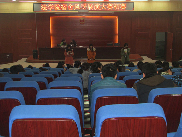 为了加强宿舍文明建设,营造和睦的宿舍文化氛围,法学院于11月14号晚在模拟法庭举办宿舍风采展示大赛初赛。法学院部分学生以及学生会生活部、自律委和网络部的成员参加了本次活动。