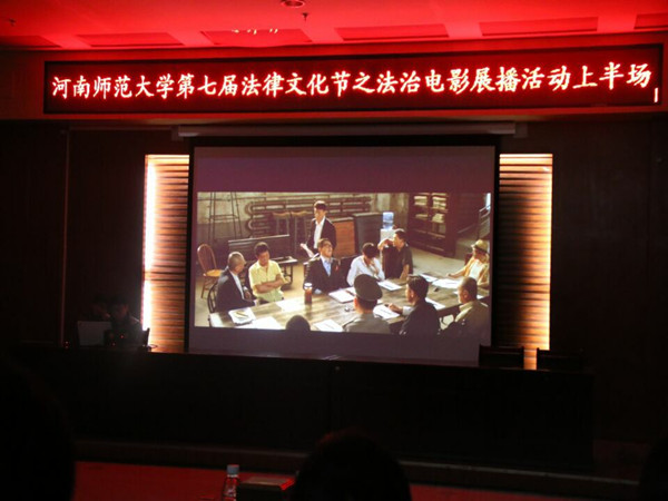 正值一年一度河师大法律文化节,为了促进同学对法律的了解,增强法律意识,法学院于11月23日晚在模拟法庭举办法治电影展播活动。法学院2015级辅导员左红娟及兼职辅导员史梦阳参加此次活动,来自11个学院的百余名同学共同观看了此次影展。