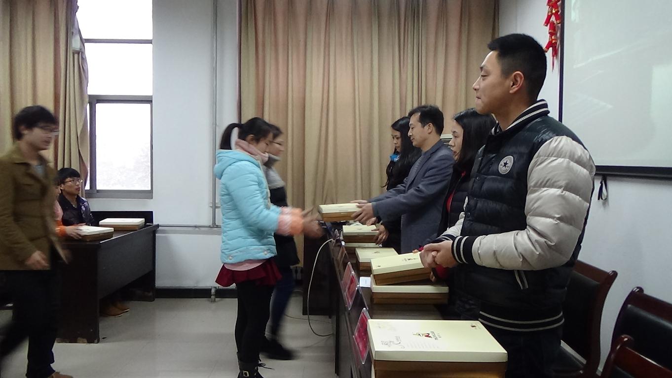 仪式分为四个环节。首先由康东书老师宣读了受补助的学生名单,随后四位老师依次向同学们发放冬季补助,厚实的保暖内衣发放到了同学们手中,沉甸甸的是学院对学生们的关怀。接着由学生代表陈瑾瑾发言,她感谢了学院无微不至的关心和照顾,不仅对学生进行学习上的教育,还在生活上给予关照,使家庭贫困的同学在寒冷的冬日也能感受到家的温暖。而后华锋副院长发表讲话,对学生进行学习、生活上的指导,鼓励学生自主学习,提升自己的专业知识水平,展望了法学院毕业生的就业前景,为同学们加油鼓劲,同时对学生进行了德治教育,教导学生尊师重道,以礼待人,学会感恩。