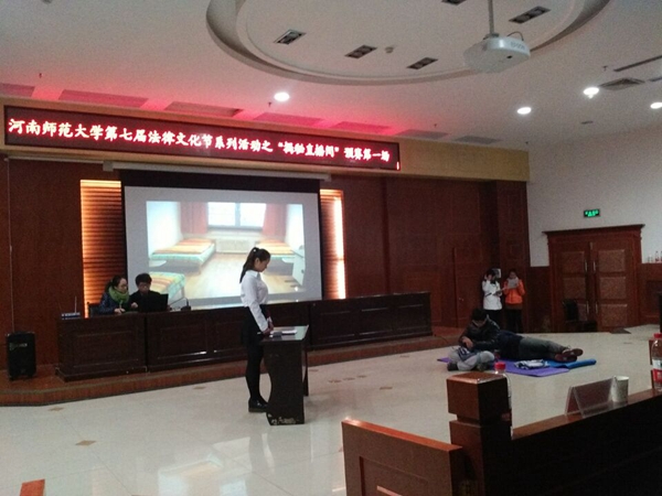 比赛分为PPT展示环节和案件演绎两大环节,参赛院系代表队不仅要亲身参与,演绎典型案例,还要通过PPT演示、讲述等方法对案件进行一定的分析和推理。比赛开始,首先登场的生命科学院队以《出租屋里的噩梦》作为案件主题,通过清晰明了的图片展示和反常规的思维模式带领观众深入探析案情的发展始末,启人深思。而随后登场的教育与教师发展学院则通过深情演绎在追溯案件的前因后果的同时向观众普及法律知识,透过案件所反映的社会问题呼吁关注社会弱势群体,博得阵阵掌声。商学院队的演绎更是别具一格,层层推进的主题,扣人心弦的案情给观众留下了深刻印象。个个学院的代表队都展现出自己默契的团队合作和高超的演技。此外,为活跃现场氛围,主持人还与观众进行游戏互动,最后在浓厚热烈的氛围中,商学院代表队取得比赛胜利。接着由陈敬涛老师做出最后点评,他对参赛选手的参与热情和演绎能力给予了充分肯定,同时也对选手们在主题的选择、强化等方面存在的不足提出了指导性意见,并倡导同学们多多参与此类活动,在活动中丰富升华自我。