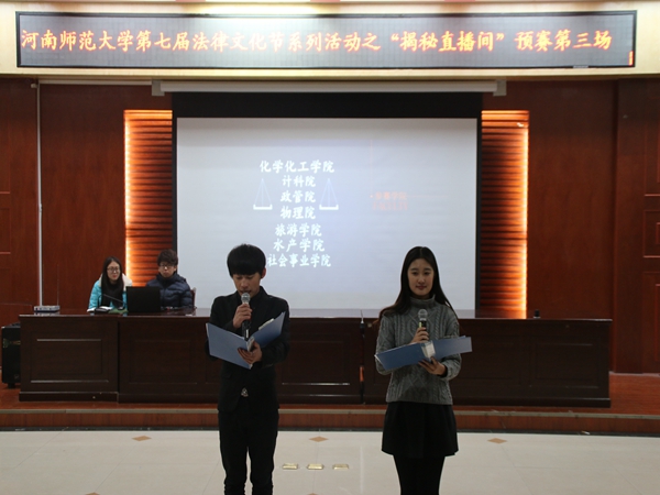 为了提高各学院学生的法律素养,丰富法律文化,30号晚上,法学院法律服务部在模拟法庭举办了“揭秘直播间”的决赛。法学院副教授王晓慧以及参赛各院的学生会主席作为评委出席了本次活动。商学院、美术学院、外国语学院等六个学院的同学参加了本次活动。