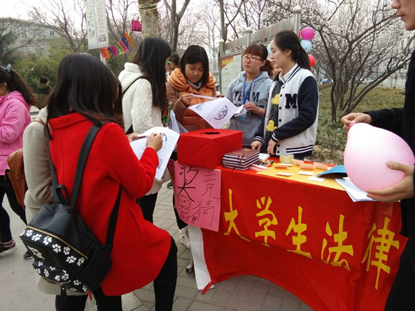 为了宣传消费者权益的重要性,让更多的同学了解国际消费者权益日,3月15日下午,法学院法律服务部在校内万人餐厅西南角开展“3.15国际消费者权益日”普法活动。