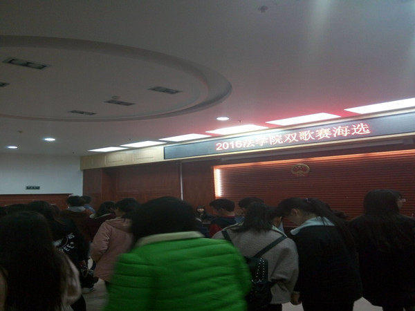 3月26日晚,由文娱部主办的“双歌赛海选”活动在模拟法庭举办,团委学生会主席团及15级300余名同学参加了此次活动。