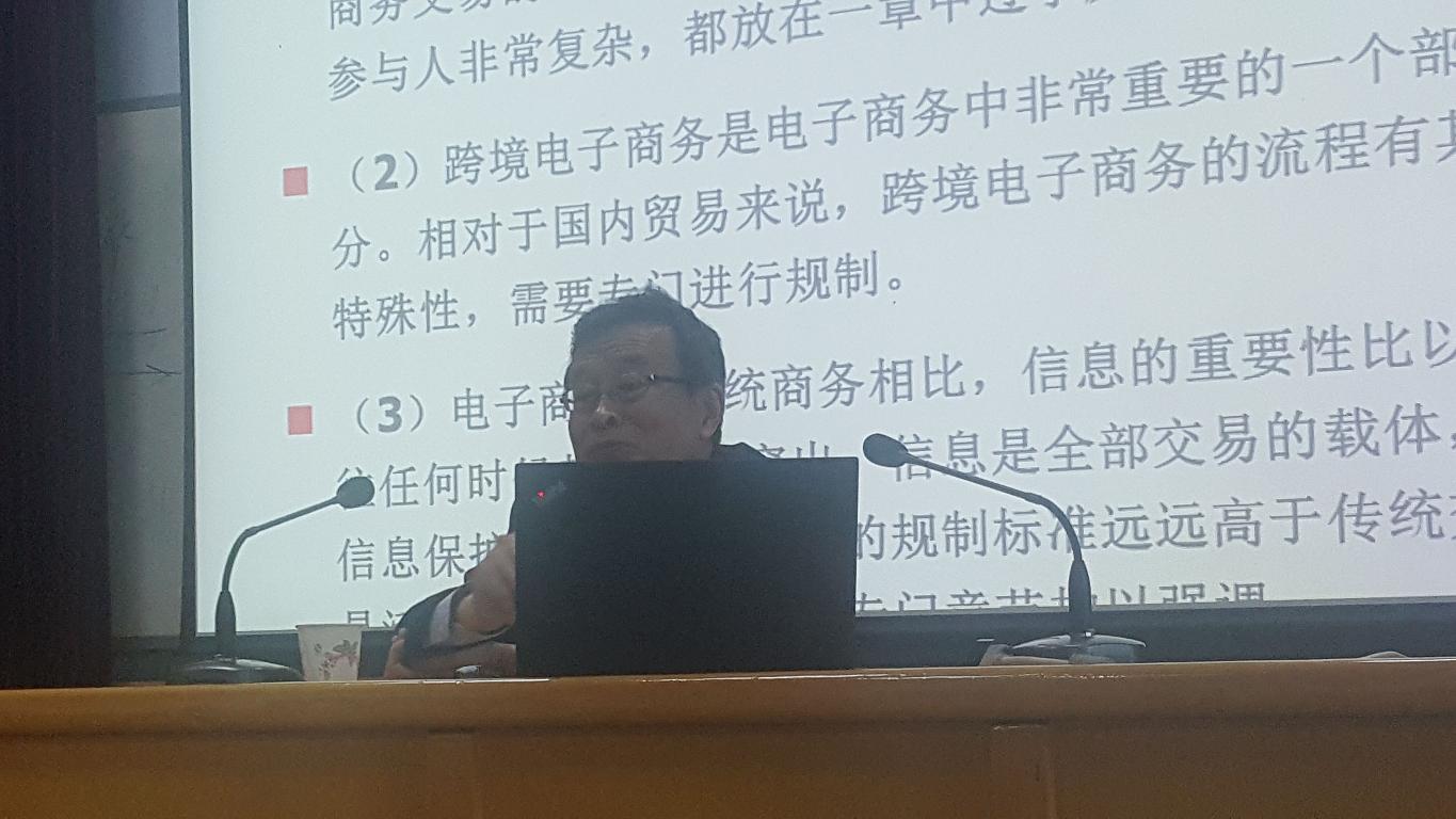 报告会上,杨教授首先以个人经历阐述了我国电子商务法的发展历程。随后从研究内容、立法框架设计、立法条标的具体说明、联合国跨境电子商务交易网上争议解决的立法四个方面为我们详细解读了电子商务法。杨教授指出,电子商务立法要为电子商务持续健康发展发挥引领、推动、示范和保障作用,并以他的最新著作《电子商务法教程》(第三版)为样,深入浅出地为我们解析了电子商务法的研究内容。又以表格形式简明清晰地讲解了电子商务法的结构内容,详细说明了我国电子商务法立法框架设计,并讲述了在起草过程中发现的一些立法技术方面的问题。杨教授博学多思,视野开阔,所讲内容由浅入深,在场师生受益匪浅。讲座结束后,杨教授就同学们提出的“电子发票”“霸王条款”等相关法律问题进行了耐心解答。