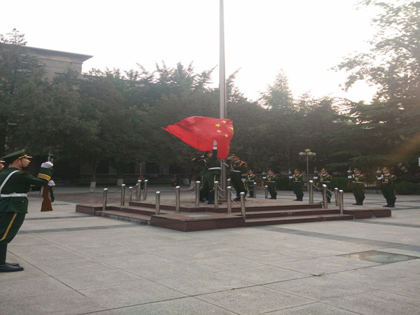 7时整,升国旗仪式正式开始。在全体师生的注视下,训练有素的国旗护卫队迈着铿锵有力、整齐矫健的步伐走向升旗台。伴随着雄壮激昂的国歌声,迎着灿烂似火的朝阳,升旗手振臂一挥,鲜艳的五星红旗冉冉升起。在庄严肃穆的氛围下,师生们心怀对祖国的无限热爱和崇高敬意,对迎风飘扬的五星红旗行注目礼。