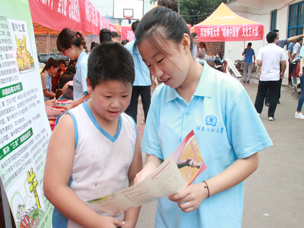 活动开始前,队员们便精心布置好了活动现场,悬挂起宣传条幅。小分队的队员们为了尽可能扩大法律宣传覆盖面,在烈日炎炎下走向街头巷尾,走入各家各户,向村民们发放法治宣传页,同时与村民们进行热切攀谈。通过交谈志愿者们了解到农村中存在着许多侵权纠纷,但很多村民都不知道该如何解决。其中有一位老奶奶,说起自己的孩子们相互推卸赡养老人的责任,但在房屋利益上却丝毫不退让时的黯然,让在场的志愿者们都叹息不已,队员们尽己所能地运用自己的专业知识,为老奶奶提供了最佳解决方案,并认真给老奶奶讲解相关法律法规。同时,对于一些较为棘手复杂的问题,队员们则将其进行了汇总并记录在案,为村民们留下了我校法学院法律援助中心的联系方式,为他们提供进一步的法律咨询。