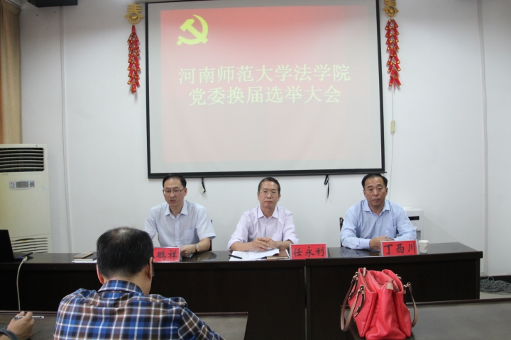 9月27日下午,法学院党委换届选举大会在崇法楼301举行。校党委组织部正处级组织员丁西川应邀出席。法学院党委书记任永利、院长王鹏祥及全体党员参加了大会。大会由王鹏祥同志主持。
