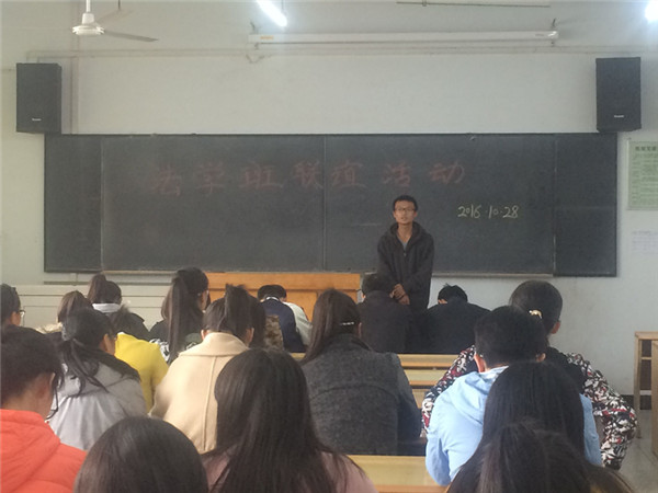 此次活动由2015级法学班班长宋均主持。活动伊始,两个班的班委们依次做了自我介绍,接着,2015级班委及优秀学生们依次上台分享自己的学习生活经验,为2016级同学们建言献策,指点迷津。其中获得国家奖学金的2015级优秀学生刘昶谈到,大学生要处理好四方面关系:一是处理好学习和人际交往的关系,要坚持学习,坚信“你若盛开,清风自来”;二是平衡好学习和考试的关系,他指出两者不能等同,学习是心理上的满足,考试考证则是未来生活工作的前提与保证;三是协调好学习和实践的关系,他提到要想成为一名律师,最重要的除了专业知识还要懂得管理和营销,而要想成为法官,检察官则还要有正义感与责任心;四是维系好学习和政治的关系,他号召同学们坚定共产主义信念,不断提高自身思想素质与政治素养。同时他还为同学们介绍了司考和考研,介绍了我国法学界的五院四系和各个学校的实力情况与地域辐射。随后,为活跃现场氛围,现场同学们还进行了击鼓传花游戏,由接到球的同学们上台进行才艺表演,丰富多彩的表演引得现场同学们欢笑阵阵,掌声连连,现场氛围浓厚热烈。