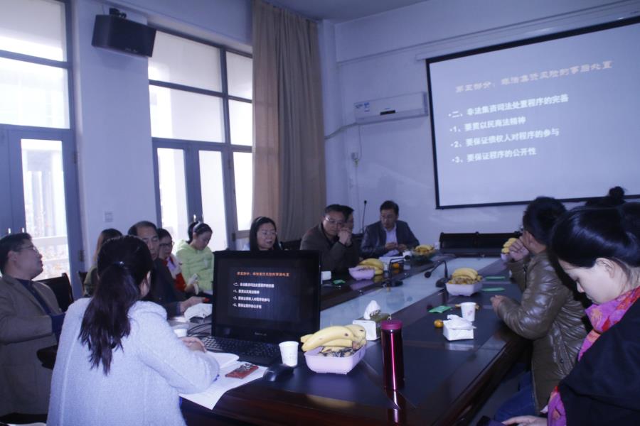 为响应河南师范大学研究生院第六届研究生“学术活动月”活动的号召,加强研究生的能力培养,提高研究生的综合素质,11月16日下午,我院在崇法楼会议室302举办文化沙龙活动,由经济法教研室王晓慧老师主讲,韦留柱老师、于庆生老师、黄延廷老师等多名老师以及2015级学术专业硕士研究生共同参加并探讨我国非法集资风险控制问题。