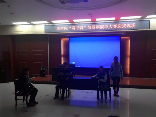 为响应我校“阅享经典,书香师大”读书活动的号召,法学院于11月20日晚在模拟法庭举办了“赏书魂”情景剧演绎大赛的院级比赛。法学院各参赛团队和部分2016级学生参加观看了此次比赛。
