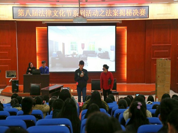 12月3日下午,法学院在模拟法庭举办第八届法律文化节系列活动之法案揭秘决赛。此次比赛由法学院副教授、研究生导师黄娟和参赛学院的学生会干部担任评委,各入选学院的部分学生参加了此次比赛。