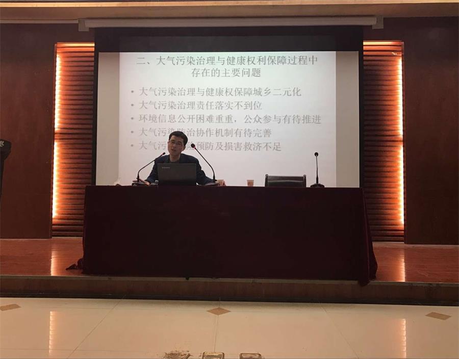 12月6日下午,我院张明涛博士应邀在模拟法庭开展了题为“大气污染治理与健康权利保障”的学术报告会。此次报告会由法学院研究生工作秘书左红娟老师主持,法学院全体研究生和部分本科生聆听本次报告。