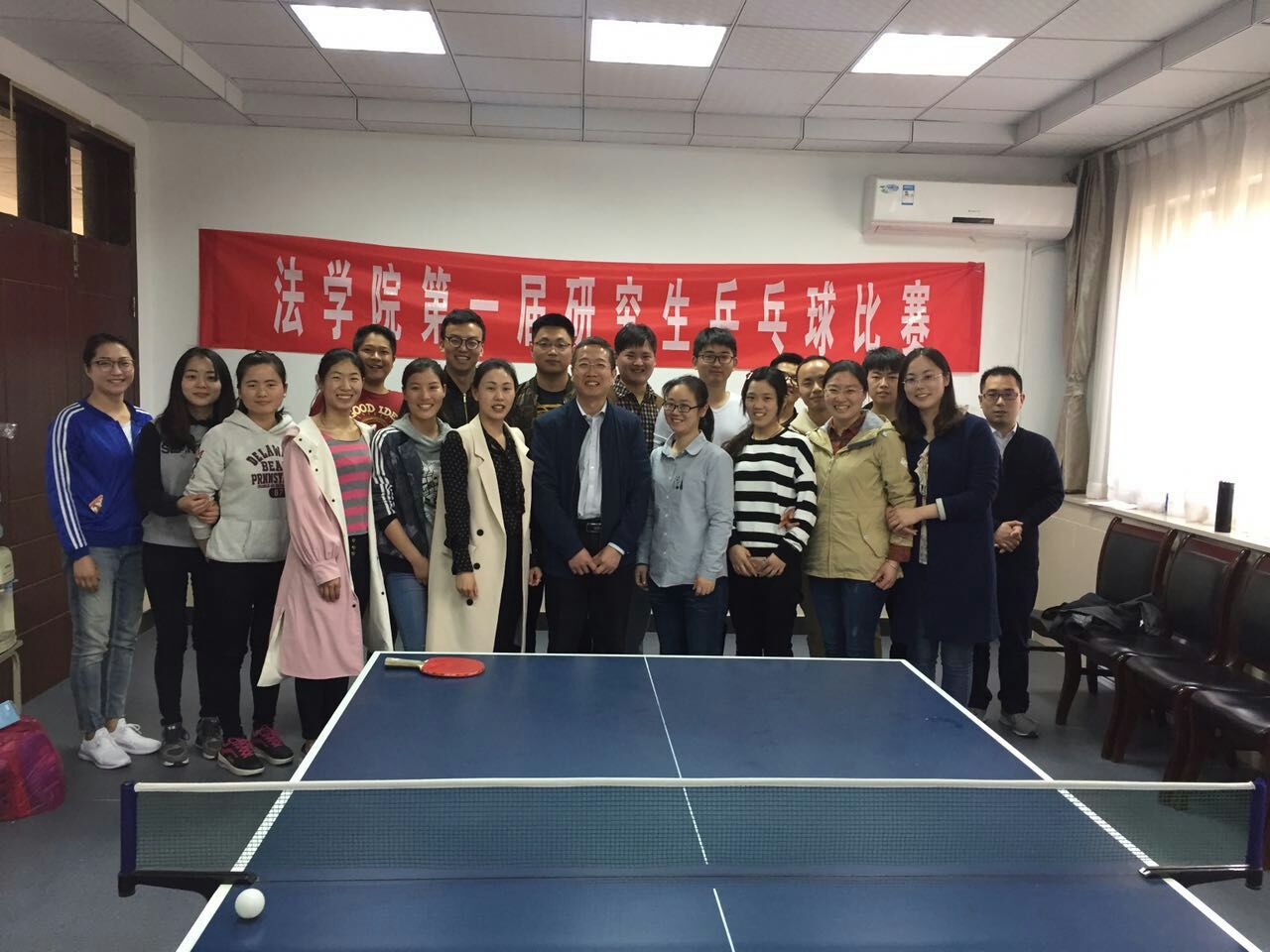 4月14日下午,法学院第一届研究生乒乓球比赛在学院教工之家成功举办。学院党委书记任永利、研究生工作秘书左红娟、研究生辅导员刘杨等老师应邀参加了本次活动。