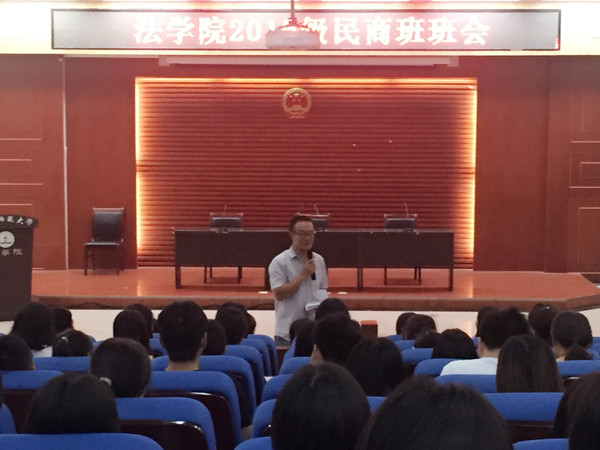 为了帮助大家明确新学期各项任务,树立新学期的具体目标,法学院2015级民商班于九月九日下午在模拟法庭召开了大三学年第一次主题班会,法学院副教授、民商班班主任李贵扬组织主持了此次主题班会,2015级辅导员左红娟,兼职辅导员杨毅斌特邀前来,民商班全体同学参加了此次班会。