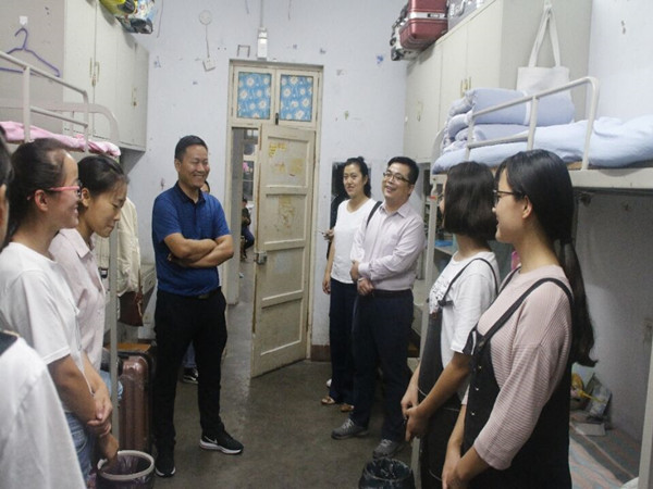 在走访过程中,学院各领导悉心问候新生,与同学们进行亲切的交流,不仅细心询问了学生们的家庭情况及学校住宿情况,还耐心聆听同学们的心声,并希望同学们能够将学院、学校当家,有困难及时向学院这个大家庭寻求援助。王鹏祥指出河南本省同学具有地缘优势,因此对外省来同学要多加照顾,给予他们温暖,让每一位同学都能切身感受到大学生活的美好。任永利教导同学们大学是一个新起点、新阶段,并希望同学们能够珍惜大学时光,不断完善提升自我,用四年时光塑造一个更好的自己。葛照金叮嘱同学们要注意宿舍安全,谨慎用火用电,并告诫同学们远离非法宗教活动,提防不良宗教思想。其他各位领导老师们也纷纷向新生们传达了殷切关怀与期盼。