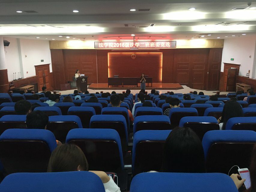 为促进班级的发展,鼓励更多的同学参与班级建设,法学院法学二班于9月26日在模拟法庭举行班委竞选活动,2016级兼职辅导员赵玥彤和法学二班全体同学参加此次活动。