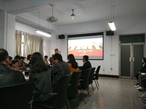 此次“团青心相通,献礼十九大”团委机关开放日活动共分为四个流程,活动按照流程安排依次有序进行。活动初始,校团委相关负责人与大家一起微信面对面建群互动,群聊的建立以方便大家今后工作的交流和沟通,拉近青年团员与团组织的距离。活动第二项,将参与本次活动的青年团员们分为两队,由校团委组织部两名负责人分别带领一队参观校团委各部室。在参观过程中,校团委各部室的值班人员热情、详细地为大家介绍了所在部门的职责。其中特别提到了校学生会权益部,作为校学生会的年轻部门,年龄小但作用大,积极为在校师生服务各种生活权益问题。活动第三项,召开座谈会。首先,由担任主持工作的老师隆重介绍了参与此次座谈会的老师们,他们分别是校团委书记孙冬青老师,校团委组织部部长冀虹飞老师,校团委宣传部部长武煜楠老师,校团委创新实践部部长孙晓老师。接着,我们分别观看了由校团委青年传媒中心制作的“以青春的名义”“师大版不说再见”和团中央发布的“This is China”“TG有点甜”四个小视频。从中我们感受到了师大与毕业生之间深厚的情谊,了解到了团史团情以及共青团改革工作,提高了对团学工作的认识和了解。其中视频里的一条弹幕“此生无悔入华夏,来生愿在种花家”更是击中了在场所有青年团员们的心。视频观看结束后,在校团委书记孙冬青老师严肃又不失幽默的话语中,我们充分了解了河南师范大学团委工作基本情况,同时孙冬青老师结合实际提出了“坚持”“基础”两个词语,为在场的青年团员们指明了今后在学习、工作和生活中的努力方向。最后,校学生会主席为大家介绍了校学生会的相关情况。此次开放日活动在各位青年团员们的自主交流中接近尾声,我们领取了纪念品并合影留念。