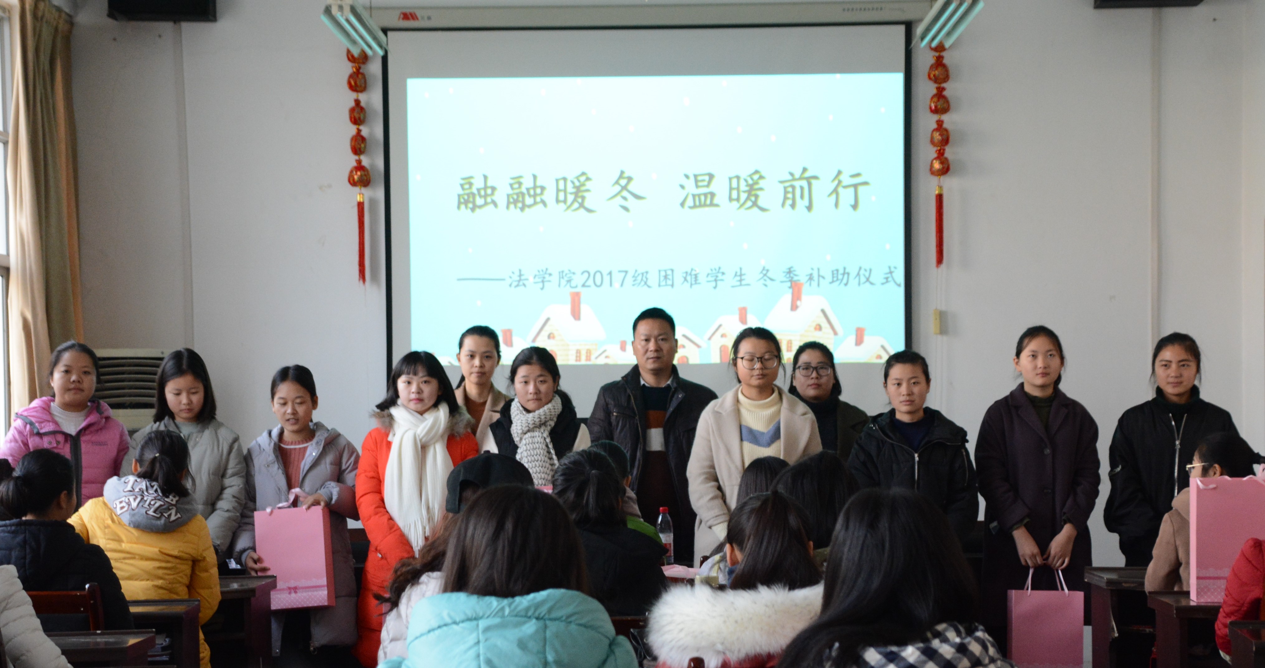 在冬季到来之际,我院于11月30日上午在崇法楼举行“融融暖冬,温暖前行”2017级困难学生冬季补助仪式。院党委副书记葛照金、2017辅导员康东书、兼职辅导员郝梦臣参加此次会议。
