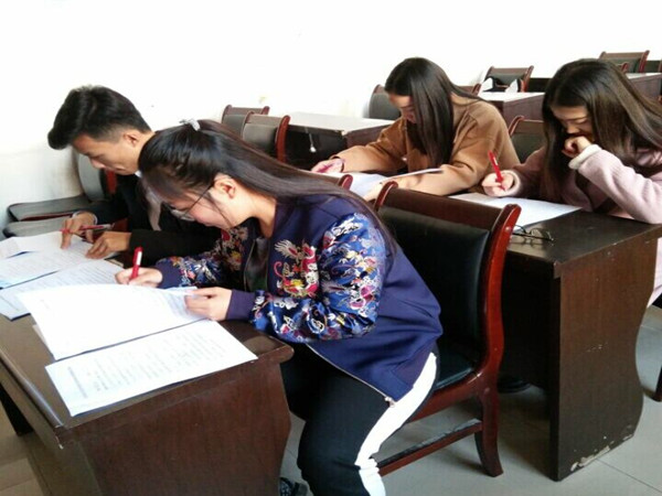笔试开始前期,为确保笔试时17名同学全部到场,团委组织部负责人合理协调同学们的时间。中午十二时四十分,17名同学全部到齐并且签到完毕。试卷分发前,团委组织部副部长先向同学们具体说明了本次活动的重要性以及本次笔试择优的选拔标准,同时也对同学们的积极参与表示由衷的感谢。随后,同学们便开始了紧张有序的赛前笔试。考试过程中每个同学都严谨认真,沉着冷静,认真答题,监考人员也尽职尽责,监督同学们完成答卷。考试结束后,同学们依次有序离场。待17名同学全部离场后,团委组织部成员合理分工,客观公正,认真仔细的将试卷批改完毕,按照分数排序,选出了前十二名为正式参赛人员。本次笔试就此圆满结束。