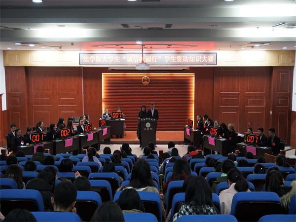 小信诚,则大信立。为宣传学生资助政策,普及金融知识,培养大学生的诚信意识,由党委工部学生资助服务中心主办、法学院承办、法学院团委学生会办公室组织的“大学生诚信校园行学生资助知识大赛”于12月2日上午八点半在模拟法庭举行。法学院团委书记、2016级辅导员马淑明、部分学生干部担任评委,2016级及2017级部分学生参加。