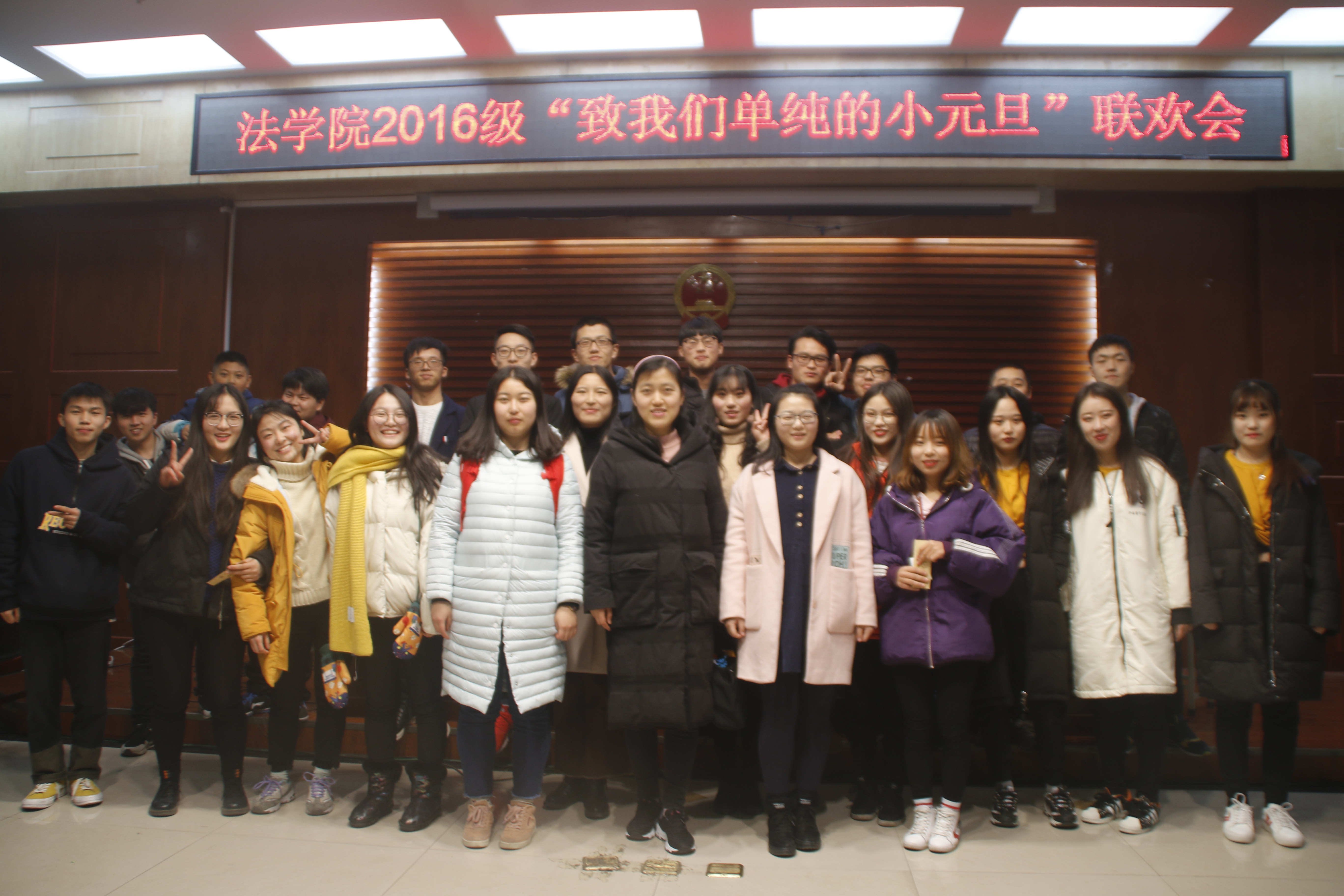 张扬个性显风采,辞旧迎新庆新年。12月23日下午3点半,法学院2016级于模拟法庭举办“致我们单纯的小元旦”联欢会。法学院团委书记、2016级辅导员马淑明和2016级兼职辅导员赵玥彤与法学院2016全体学生共同参与了此次联欢晚会。
