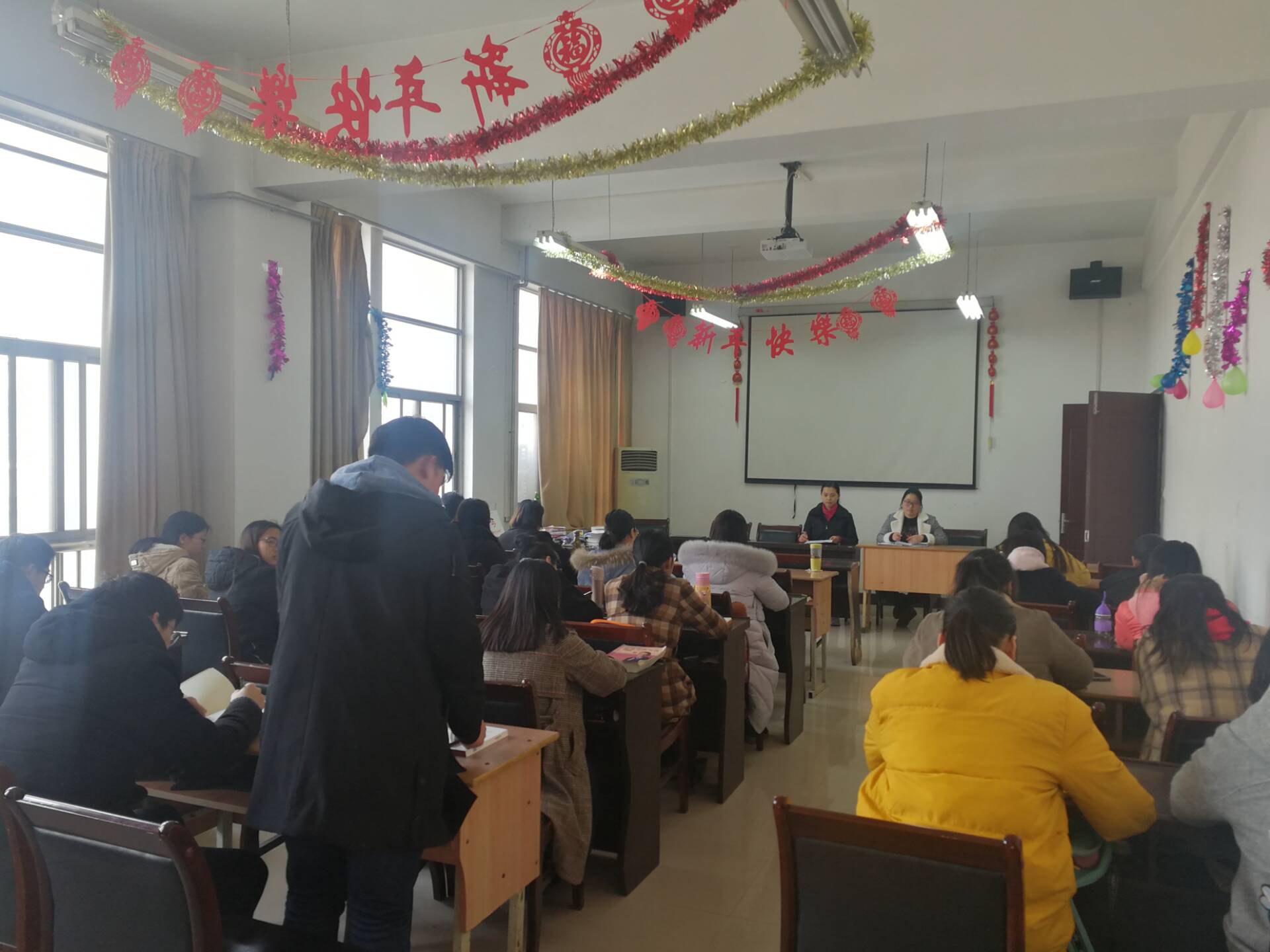 会议伊始,康东书指出,上学期各班班委对于学院所布置的任务完成的比较顺利,如班级读书和元旦联欢会等活动成功的拉近了各个班级成员间的距离,使得同学们关系更为紧密。其后,郝梦臣认为在完成任务工作的过程中,各个班委都应注意好自身的学习,争取做到工作学习两不误。为了使大家更好的交流学习,袁世博等多位同学将自身在上学期于工作与学习方面的经验向在座的班委们分享,其中袁世博同学认为良好的寝室氛围可以影响个人的行为,在良好的宿舍氛围中各个成员可以相互督促共同提高。吴倩歌同学则是从上学期从年级工作方面、学习方面、活动方面、思想方面进行了总结,提出了许多上学期我们存在的问题,提倡班委不忘初心,将热情化为使命。会议接近尾声,康东书希望班委们通过读书、运动、心理等多方面提升个人魅力,学会吃苦耐劳打好群众基础。逐渐形成分享型人格、奉献型人格、服务型人格。同时也对新学期学风建设,表彰制度,班委考核工作详细安排。