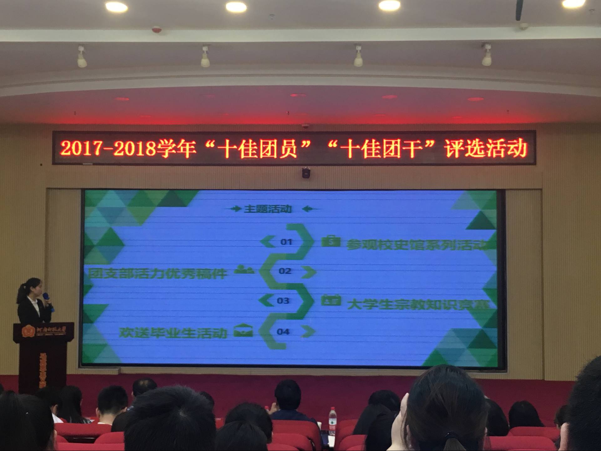 据悉,经各学院选拔、推荐,校团委审核,此次评选活动共有23名“十佳团员”候选人、24名“十佳团干”候选人进入现场展示环节。其中,法学院2015级团委组织部部长李静凭借自身优异的成绩和较高的工作能力成为本次“十佳团干”评选候选人之一。