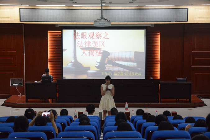 关注法治热点,共享法律趣味。为提高学生对法律条文的认识,进一步强调法律的严谨性和规范性,5月17日晚,法学院于模拟法庭举办“法眼观察”之法律误区大揭秘活动,邀请国家高级检查官、河南师范大学法学院副院长崔发明,2016级、2017级学生干部担任评委。法学院部分学生参加此次活动。
