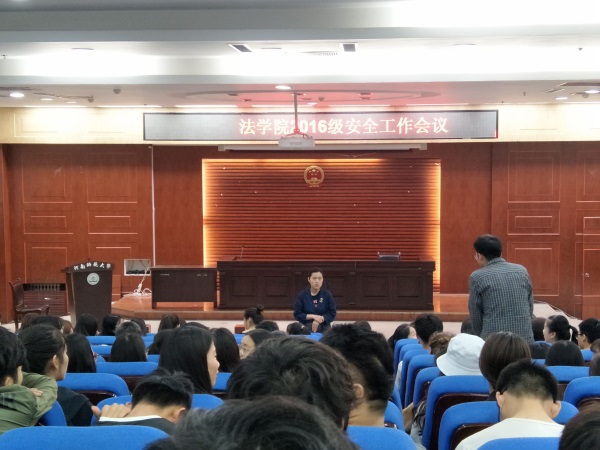 5月24日上午,法学院2016级安全工作会议在模拟法庭召开,会议由法学院团委书记、2016级辅导员马淑明主持。法学院2016级全体学生参加会议。