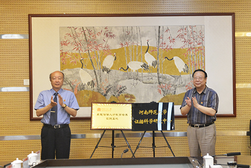 赵国祥、许晓伟共同为“河南师范大学卓越法律人才培养实践基地”和“河南师范大学证据科学研究中心”揭牌。法学院院长王鹏祥宣读检校共建协议,并与王海林共同签署、交换协议。法学院聘请许晓伟,王林海为河南师范大学法学院研究生校外兼职导师,聘请郭胜华、牛卫军等四名检察官为法学院校外导师兼证据科学研究中心研究员;市院聘请王鹏祥、韦留柱等四名教授为检察院专家咨询委员会委员。