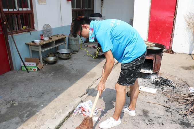 家住村西头的曲大娘,早年孀居,一双儿女不在身边。平时基本能够自理,也能做些简单的家务,但对家里稍微有点繁重的活便力不从心了。志愿者们着重清扫了卫生死角与高台工作,从厨房到庭院,里里外外打扫的井井有条。一些志愿者还替大娘择菜,洗米,将午饭为大娘准备好。在做家务的同时,志愿者们热情地与老人聊天,彼此说笑,排遣老人因子女不在家而无人交流的孤独。