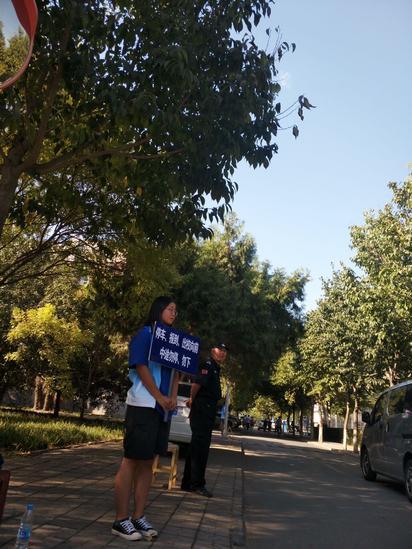 志愿者们身穿蓝色志愿服,手拿指示牌,早早便来到西校区指定地点熟悉地形,做好充足准备。面对过往的车辆、行人,志愿者们主动承担起了督导车辆行驶、疏通道路、确保安全出行的义务。当发现有中途停于道路上的车辆时,志愿者对其进行耐心解释、悉心引导,使车辆得以正确停靠,避免了交通拥堵现象的发生。活动过程中,志愿者们始终面带微笑、恪尽职守,以饱满的精神、认真的服务态度赢得了过路新生及其家长的一致好评,充分展现了当代大学生的风采与能力。