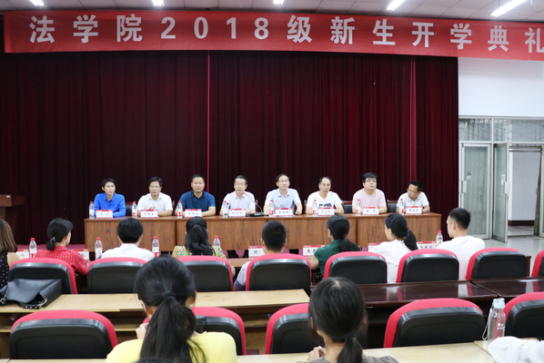 王鹏祥院长代表法学院向2018级全体新生表达了诚挚的祝贺和热烈的欢迎,向辛勤培育他们的父母、老师表示衷心的感谢和崇高的敬意。在详细介绍学院发展历程及近年来学院在学科建设、人才培养等方面取得的骄人成绩后,王院长向同学们提出了几点希望和要求:一是要脚踏实地,仰望星空。牢记父母的嘱托,不负恩师的厚望,不忘初心,稳步前行,承担时代使命,收获从容、丰盈的人生。二是要热爱专业,崇法笃行。法学是现代大学的摇篮,是当代法治的孕育者,要尊崇法律、敬仰法律,将法律作为维护社会良善的永恒追求。三是要修身养性,勇于担当。保持平常心境和淡泊情怀,接受法律所赋予的神圣使命,做一个追求高尚与卓越、促进法治发展的法律人。王院长的发言囊括治学、律己、修身等多方面,掷地有声、发人深省,令在场新生受益匪浅。