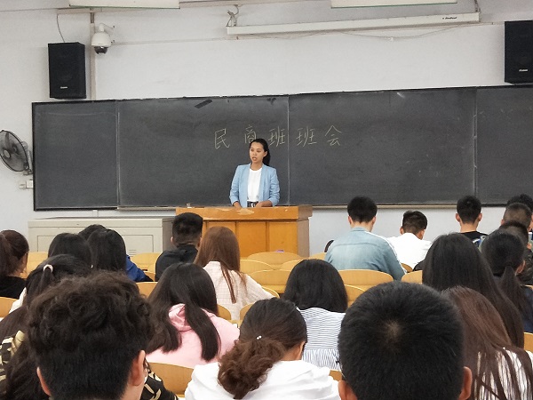 为加强班级班风建设,增强班集体的凝聚力,9月19日下午,法学院2017级民商班于田家炳楼召开本学期第一次班会。2017级辅导员康东书与兼职辅导员张雨苗主持此次会议。民商班全体同学到场。