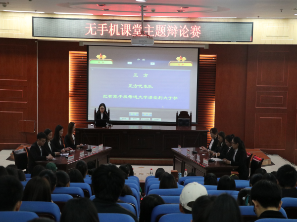 为响应学校无手机课堂的号召,加强院系学风建设,3月30日下午,由法学院辩论队举办的“无手机课堂主题辩论赛”在模拟法庭顺利举行,2018级部分同学参加此次活动。