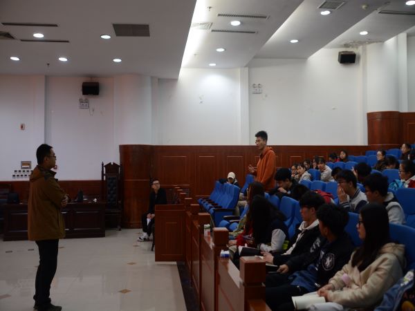 为加快培养创新创业人才,持续激发学生的创新创业热情,4月10日,法学院于模拟法庭举办了大学生创新创业理论宣讲会。此次宣讲会由法学院教学工作秘书胡光担任主讲人,学院近300名同学参加。