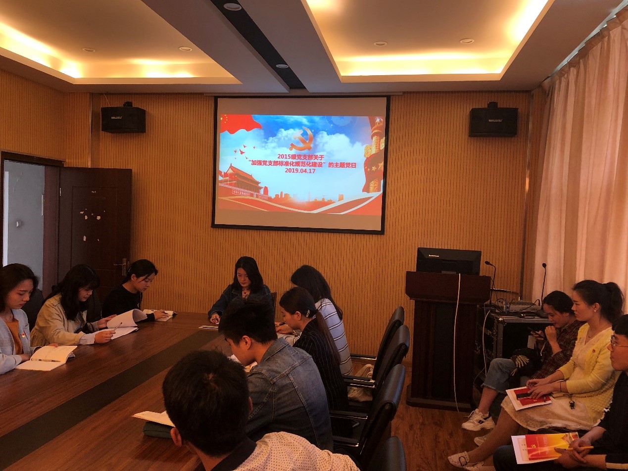4月17日下午,法学院2015级本科生党支部在崇法楼303党员活动室召开了《加强党支部标准化规范化建设》的主题党日会议,支部书记马雅妮和支部全体党员出席了本次会议。