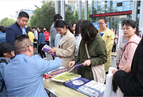 马治军在双选会现场,对用人单位的到来表示诚挚的谢意,希望大家相互支持,常来常往,共育良才,共谋发展。他通过走访了解到,法学院高度重视毕业生就业工作,多策并举,创造性开展了“把握当下,勇往‘职’前”职业规划导航月活动,通过主题教育、榜样带动、名家讲坛、牧野论剑、创新创业等活动,教育引导青年学子奋力拼搏,提升自我素养,近2年来斩获了河南省大学生“卓越杯”辩论赛冠军,河南省大学生创新创业大赛金奖等荣誉,在培养学生成才方面取得了累累硕果,毕业生整体就业率一直处于较高水准。马治军表示,就业是民生之本,法学院一定要在发扬优良传统的基础上,细化工作方案,夯实工作任务,培育一流人才,搭建各种平台,让学生有能力、有机会在激烈的就业竞争市场抢占先机、力拔头筹。