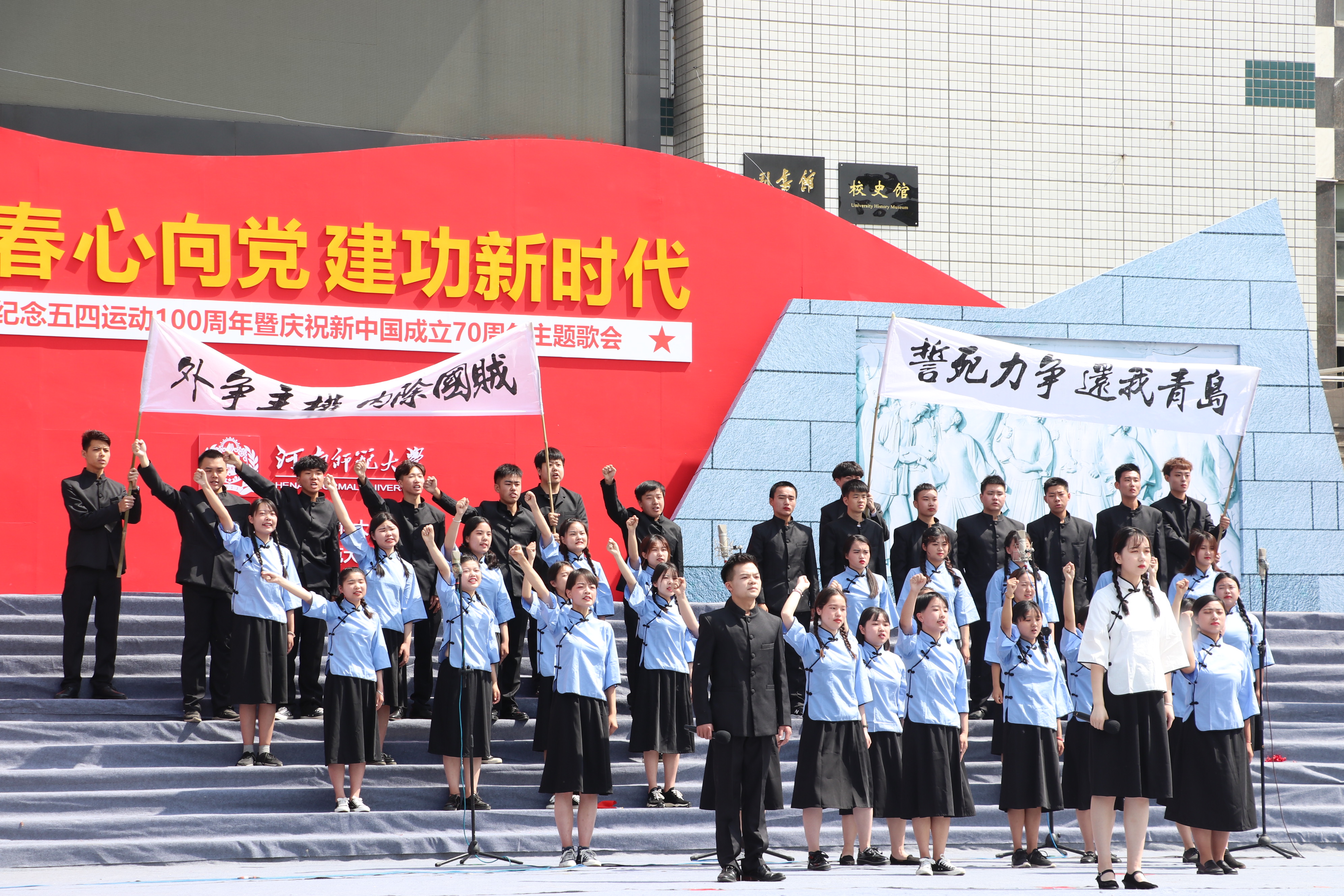歌会在情景音舞《追寻》中拉开了序幕。歌会分为“红色革命铸理想•气贯神州傲中华”“风雨兼程七十载•砥砺前行铸丰碑”“改革浪潮卷华夏•开启明灯照未来”“不忘初心跟党走•砥砺奋斗新时代”四个篇章,来自我校各个学院的23支代表队共2000余名学生用嘹亮高亢、婉转悠扬的歌声传情达意,表达了对五四先驱的无限缅怀、对中国共产党的无限热爱、对实现中华民族伟大复兴中国梦的无限憧憬。法学院团委、文学院团委的青年团员带来的自编自导音诗画表演《五四之火》,带我们重温100年前那场声势浩荡的五四运动。歌会中,法学院合唱团演唱了《外婆的澎湖湾》与《河南师范大学校歌》两首歌曲。四个声部的融合,加上轻快、统一的动作,给人带来了一场视听盛宴。歌会在全场合唱《我和我的祖国》的歌声中画上完美的句号。整场歌会气氛热烈,演出形式丰富精彩,情感抒发酣畅淋漓,展现了师大学子以青春砥砺梦想的责任担当,生动体现出百年师大不忘初心、奋进前行,与祖国同呼吸、共命运的历史使命。