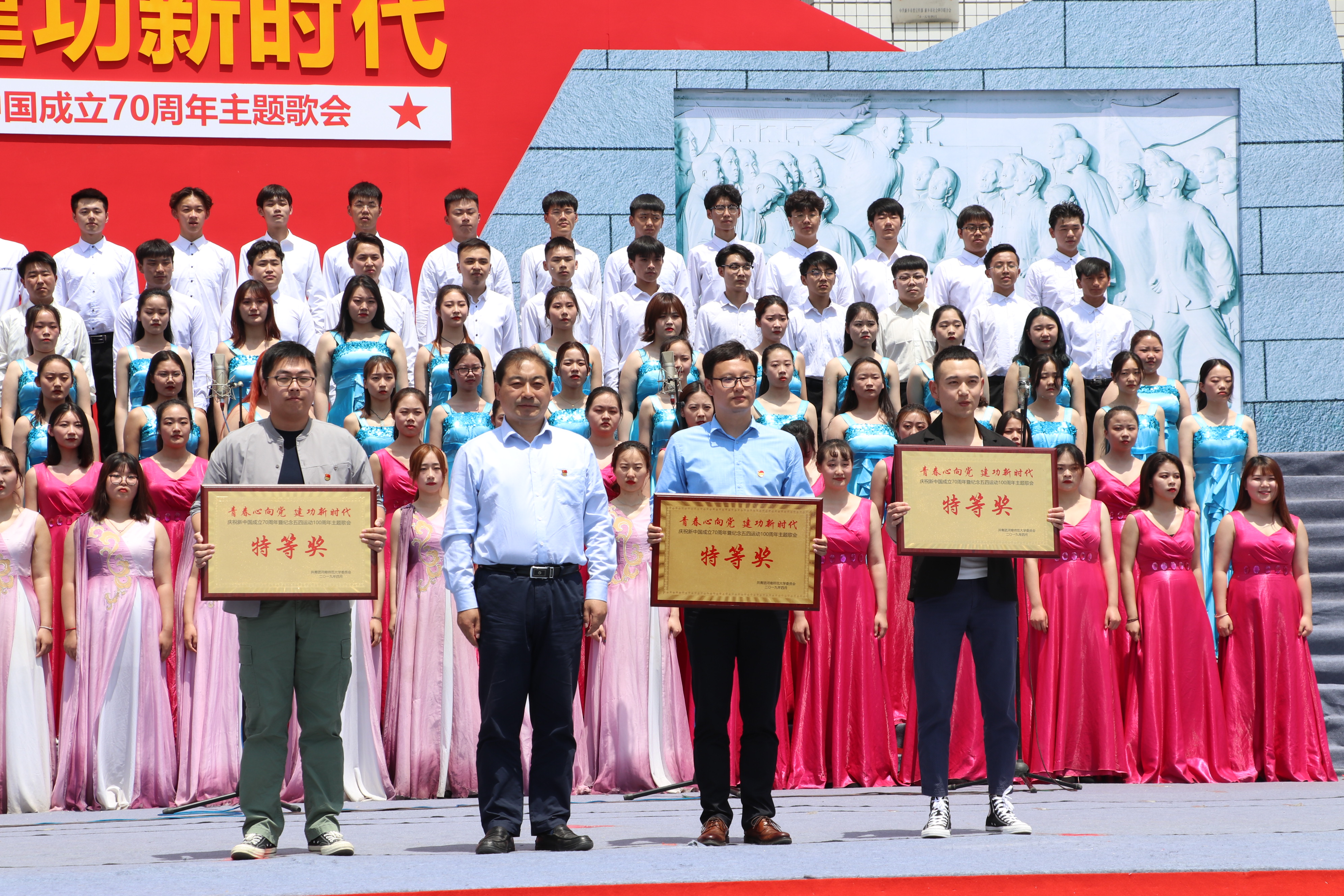 5月11日上午,由校团委主办,法学院承办的“青春心向党·建功新时代”纪念五四运动100周年暨庆祝新中国成立70周年主题歌会在我校图书馆前广场隆重举行。共青团河南省委副书记王笃波,党委书记赵国祥,党委常委、副校长岳杰勇出席歌会。党委办公室、宣传部、学工部、研工部、校长办公室、教务处、就业创业指导服务中心、心理健康教育中心、校工会、校团委等相关职能部门负责人,法学院党委书记任永利、党委副书记葛照金,各学院党委(党总支)书记、副书记、团委书记、辅导员,2018级本科生代表等6000余名师生参加此次活动。经过三个小时的激烈角逐,法学院最终取得了特等奖的优异成绩。