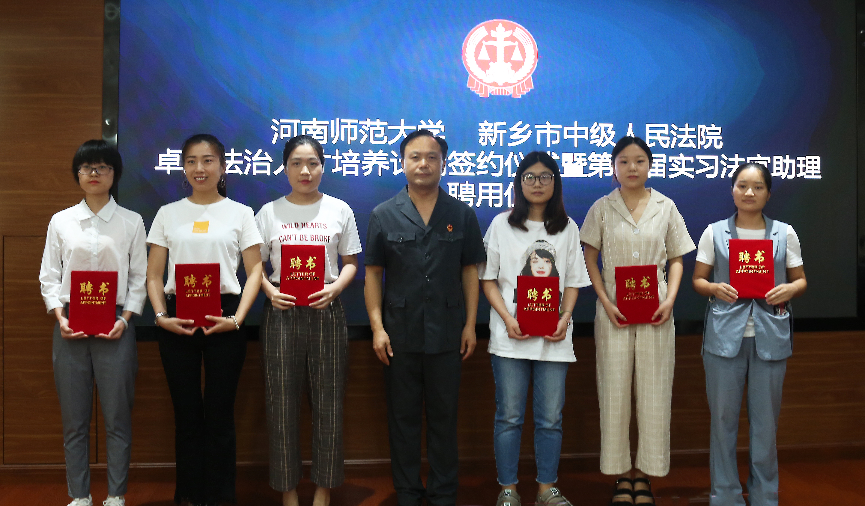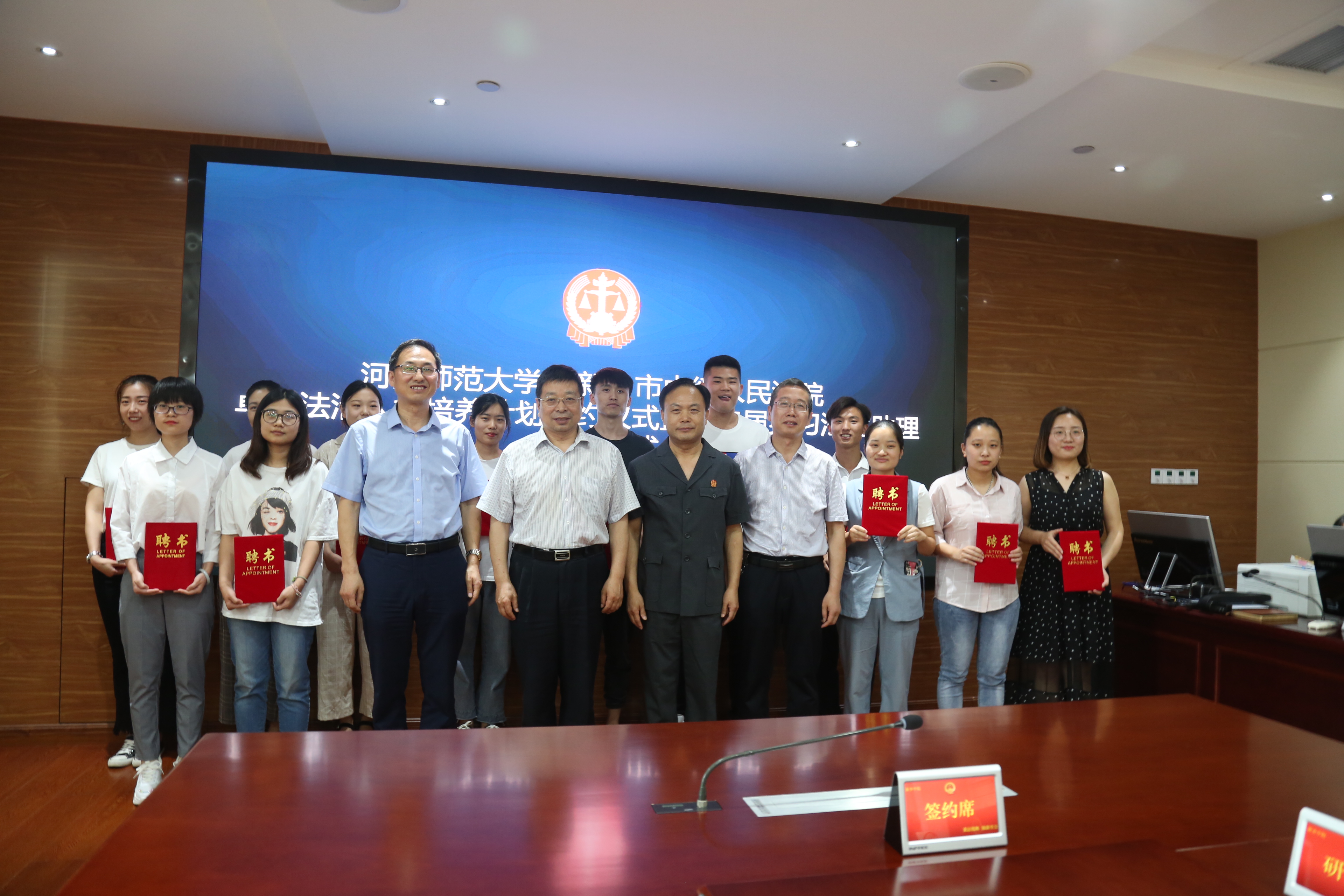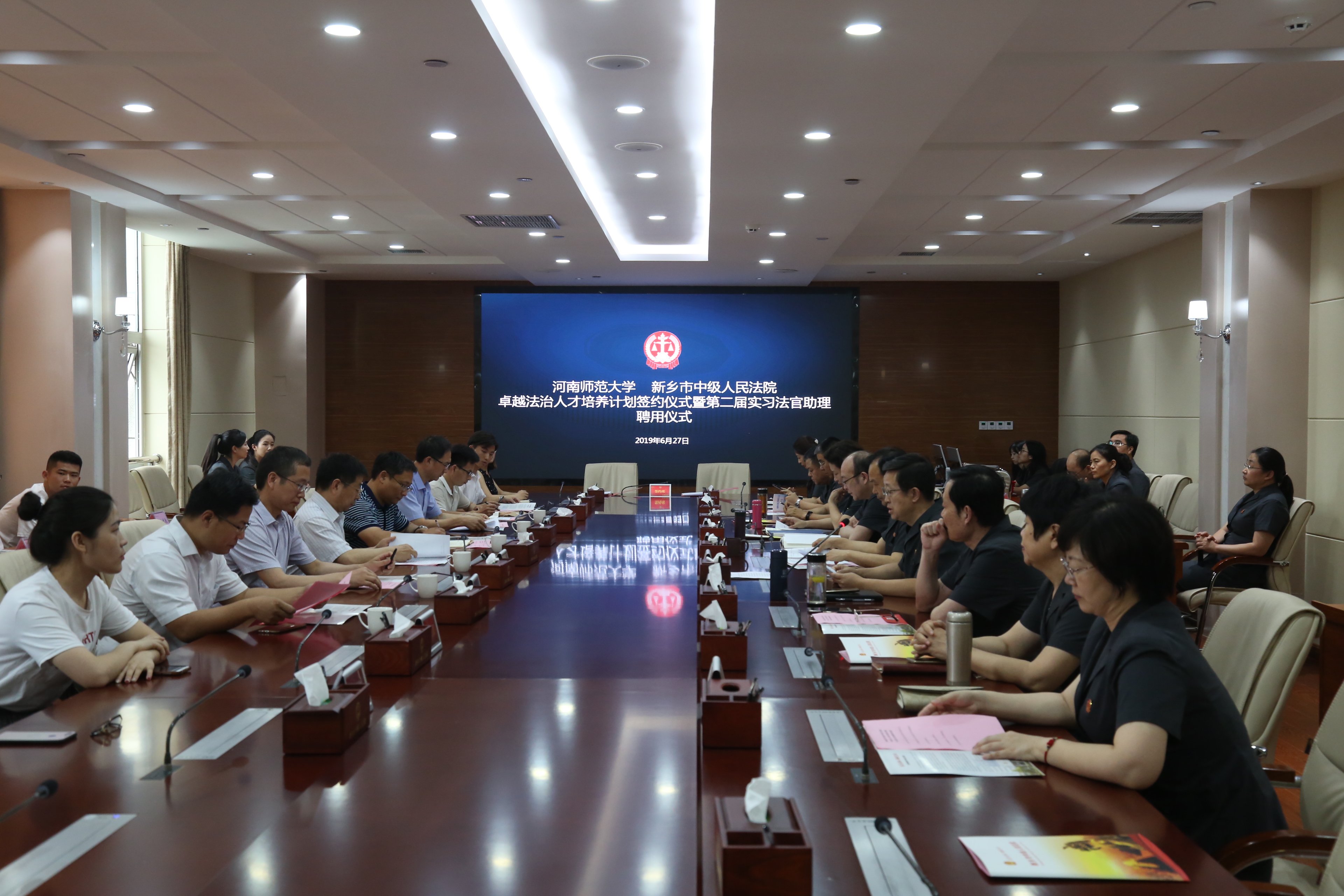 6月27日,河南师范大学法学院与新乡市中级人民法院共同举办卓越法治人才培养计划签约暨第二届实习法官助理聘用仪式。河南师范大学校长常俊标,新乡市中级法院院长袁荷刚,法学院院长王鹏祥,新乡市中级法院领导班子等出席签约仪式。河师大法学院12名研究生获聘新乡中级法院第二期实习法官助理。签约仪式由新乡中院副院长周东方主持。