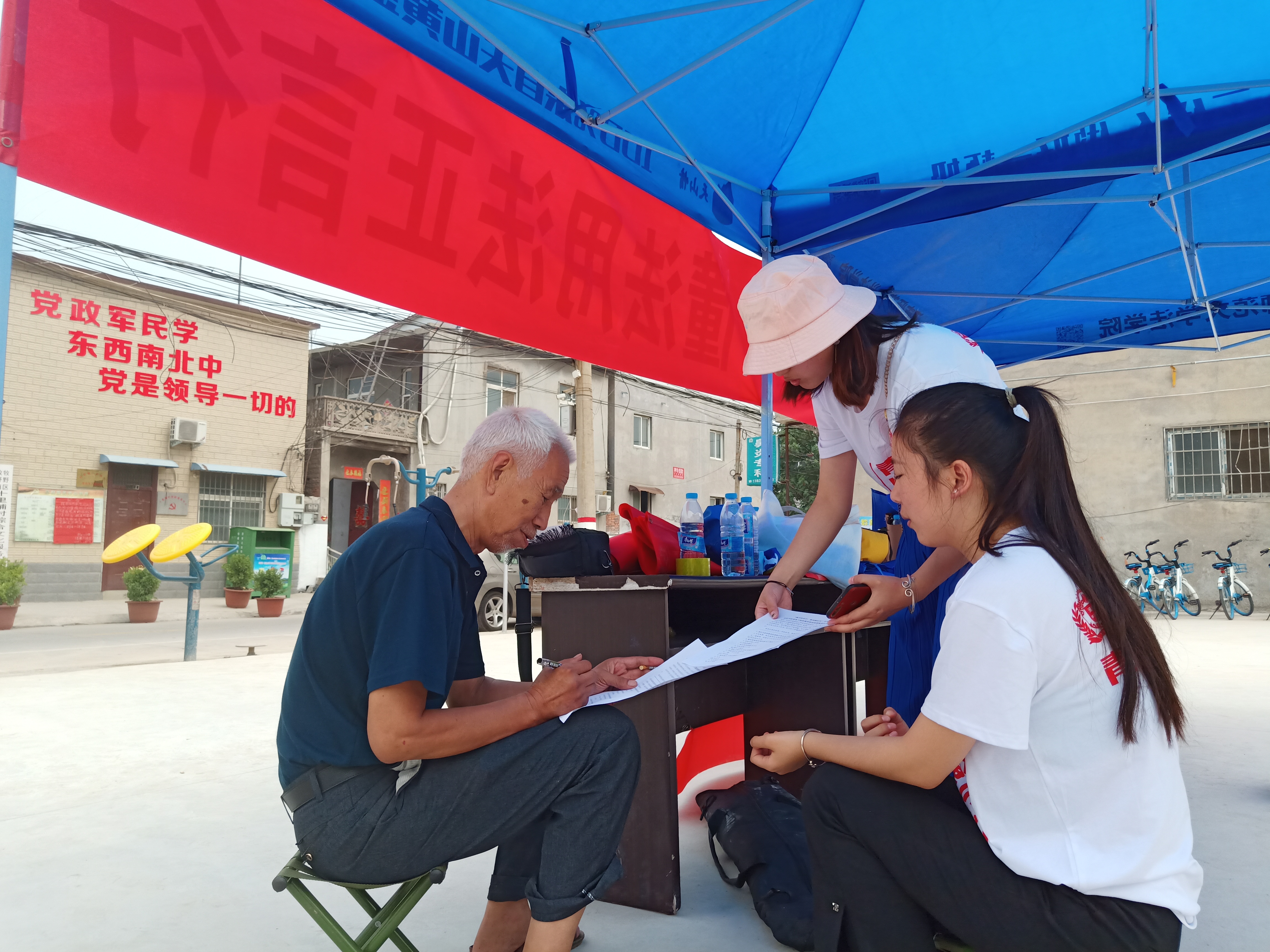 为了解决基层群众的法律疑惑,切实保障村民的合法权益,提高村民的法律知识素养,7月10日上午,法学院“携手法治行,建功新时代”全民守法宣讲团全员到达新乡市牧野区牧野镇十里铺村设立法律咨询点,接受村民咨询。