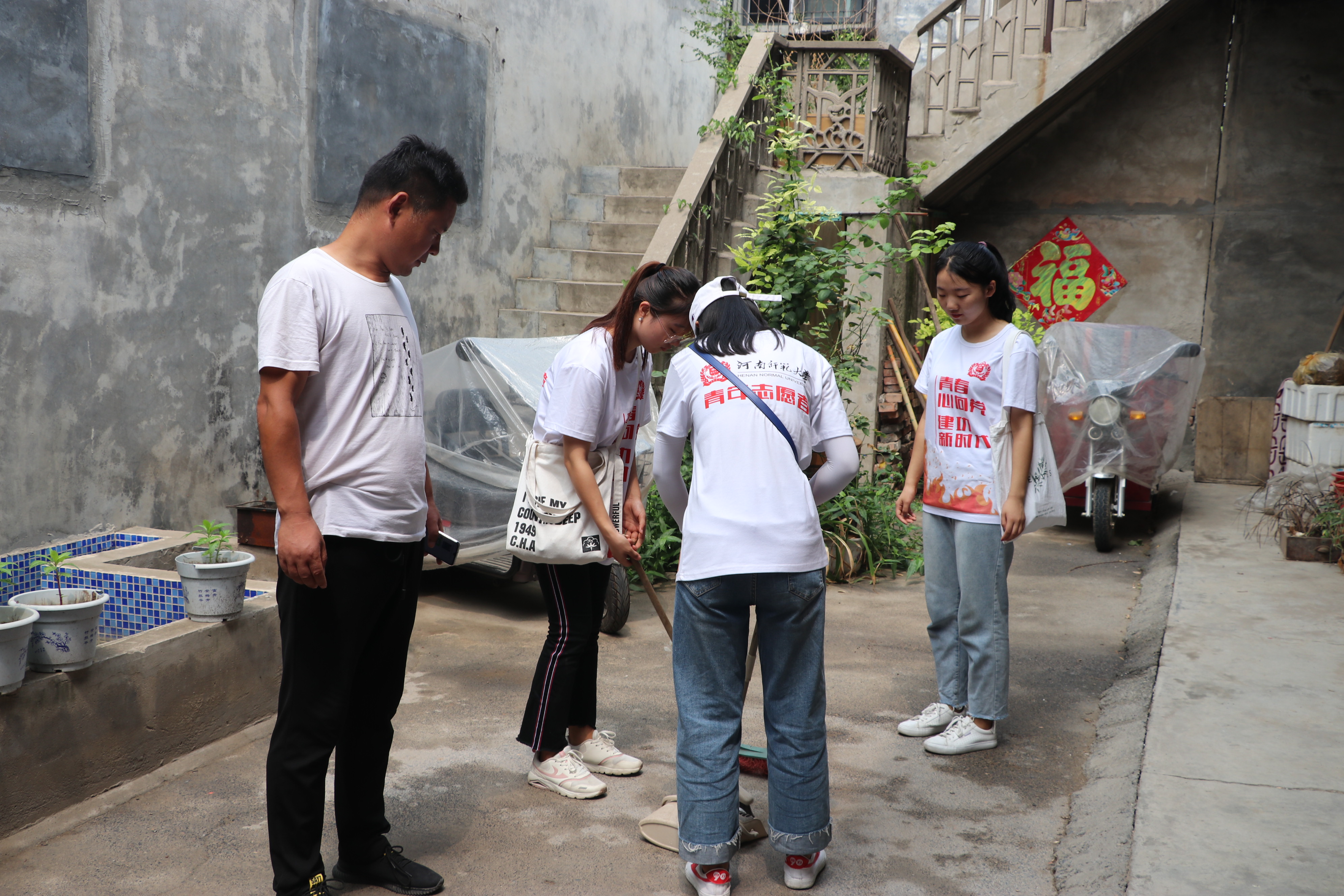 活动开始,志愿者们便携带着劳动工具热情洋溢的在十里铺村的广场上进行打扫,头顶的太阳没有挡住他们为村镇服务的热情。在对广场打扫后,志愿者们转移阵地,对十里铺村的村民们的门前也进行了志愿清理。“你们大学生以后要常来”、“谢谢你们了”是同学们从村民嘴里最常听到的话,村民们的笑脸是对志愿者们最大的激励。走出了象牙塔的同学们通过村民们的反响真正体会到了与社会相融合的责任感。同时,通过志愿活动,志愿者们与村民也拉进了心与心之间的距离,村民与志愿者之间的话题从家长里短到法律问题,增进感情的同时也无形之中以更亲近的方式普及了基本的法律问题和观念。活动结束时,志愿者们更是感受到了村民的热情,村民们的一声“辛苦了,孩子们”让志愿者们发自心底的感到高兴。
