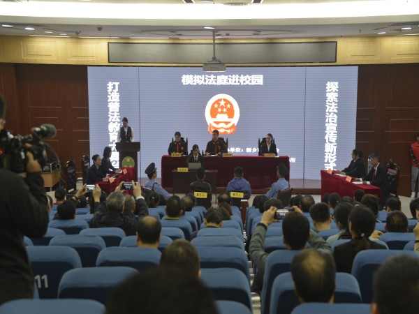 随后,观摩调研团一同参观了我校“基层行”活动相关情况的展板。在模拟法庭观看了“基层行”活动汇报短片、听取了新乡市青年普法志愿者代表、我校法学院教师马淑明就“基层行”基本情况的典型发言,观摩了我校青年普法志愿者团队自编自演的法治情景剧《法影斑斓》和青年普法志愿者团队模拟的《法庭审判》等节目。