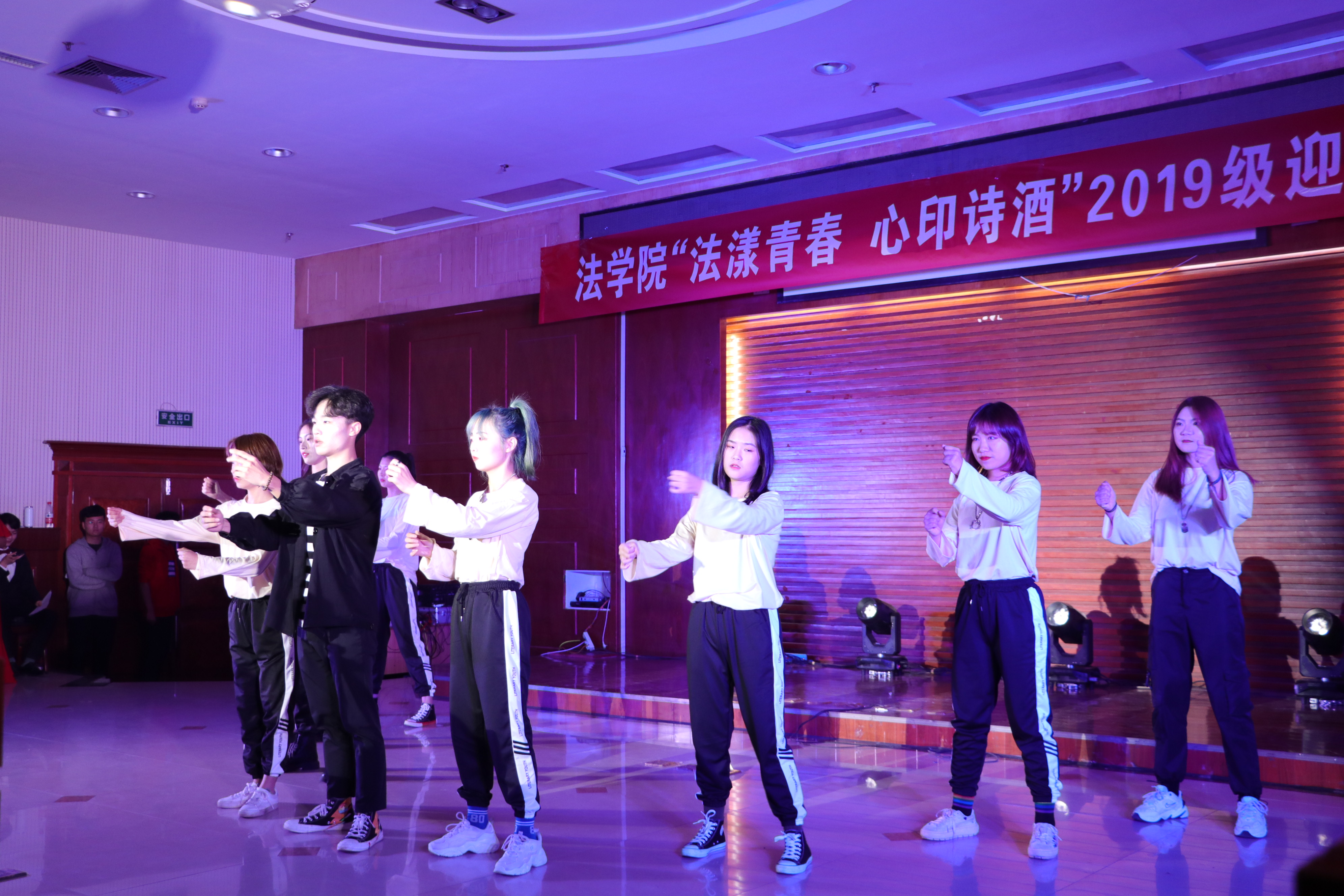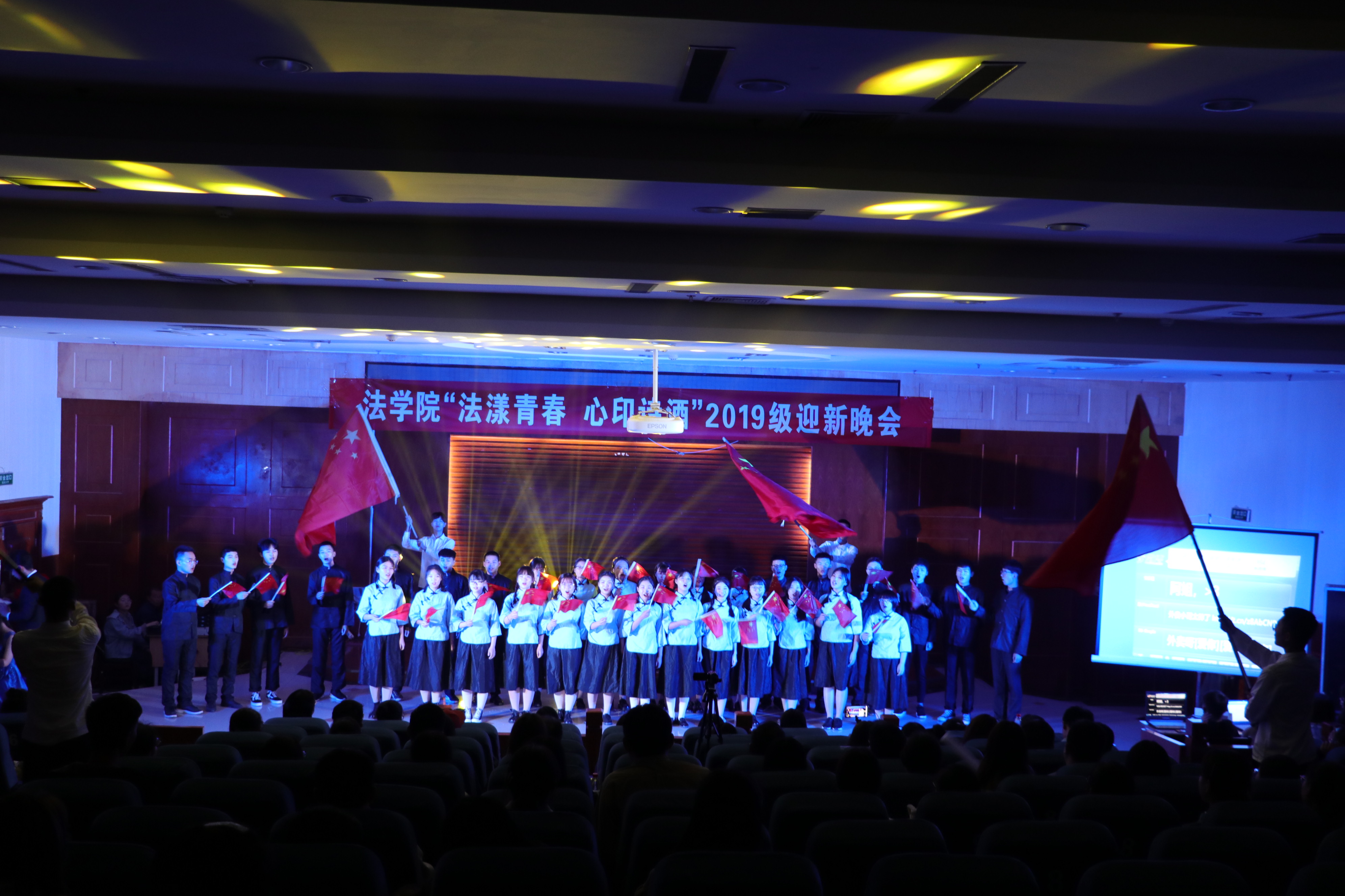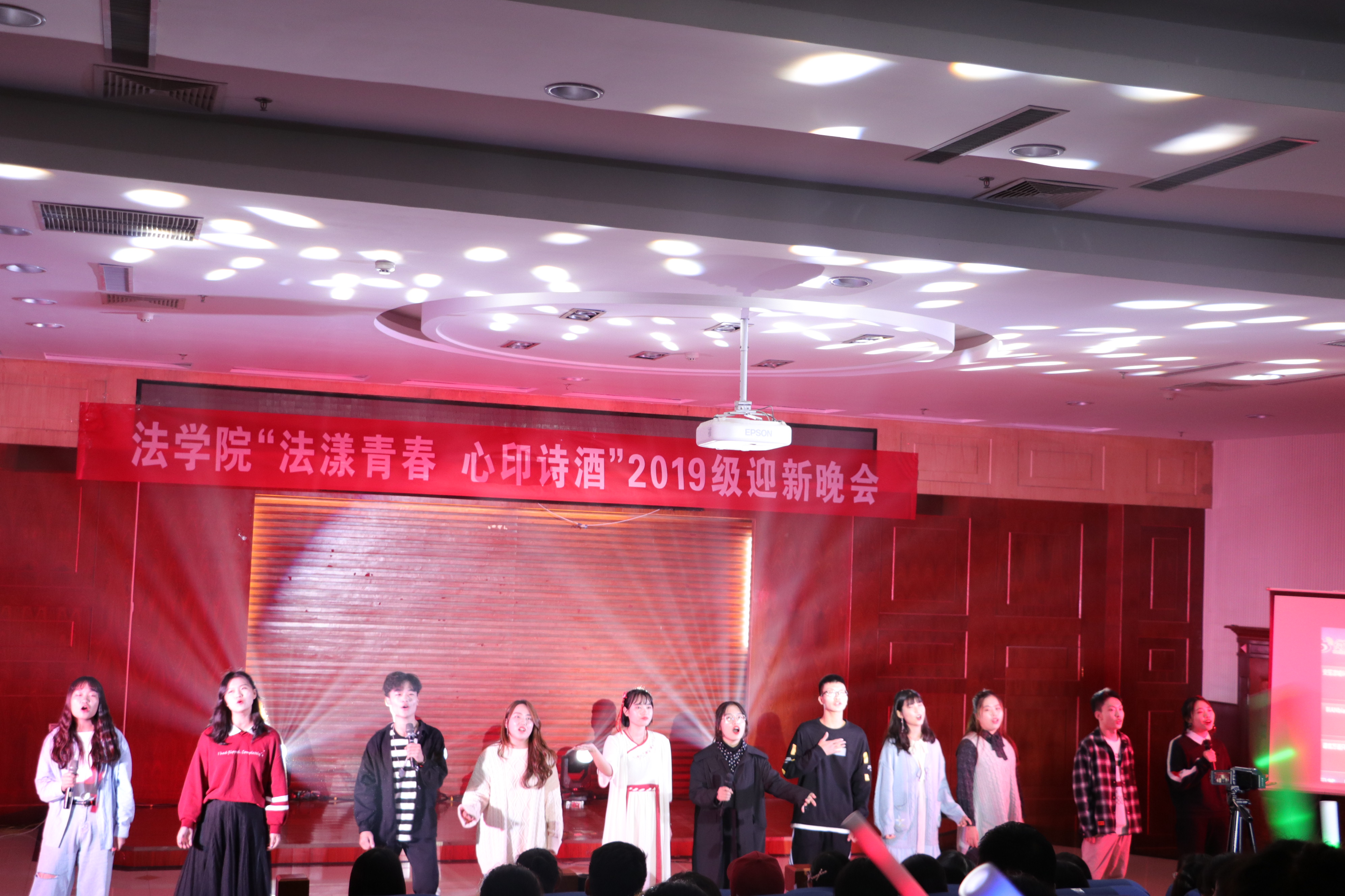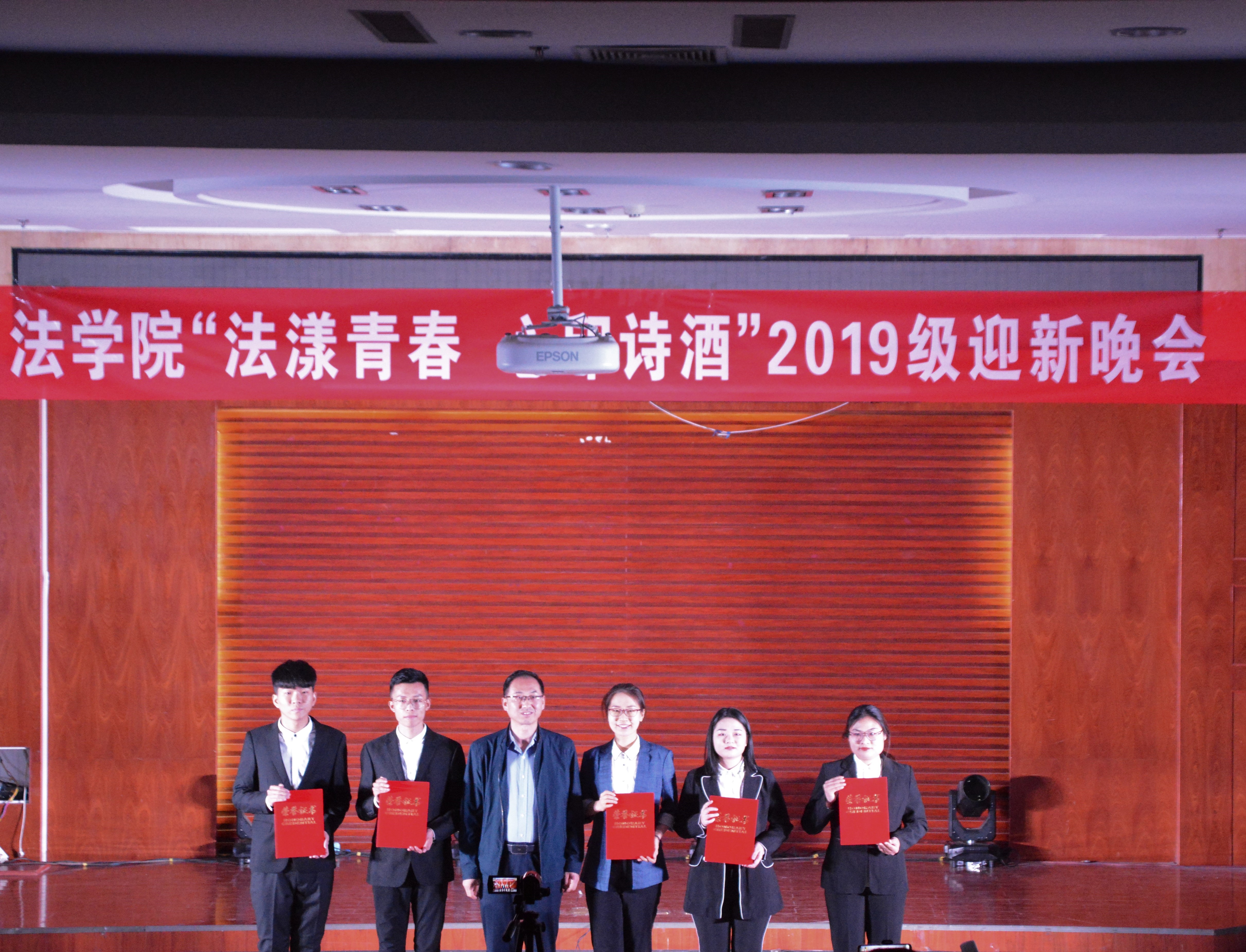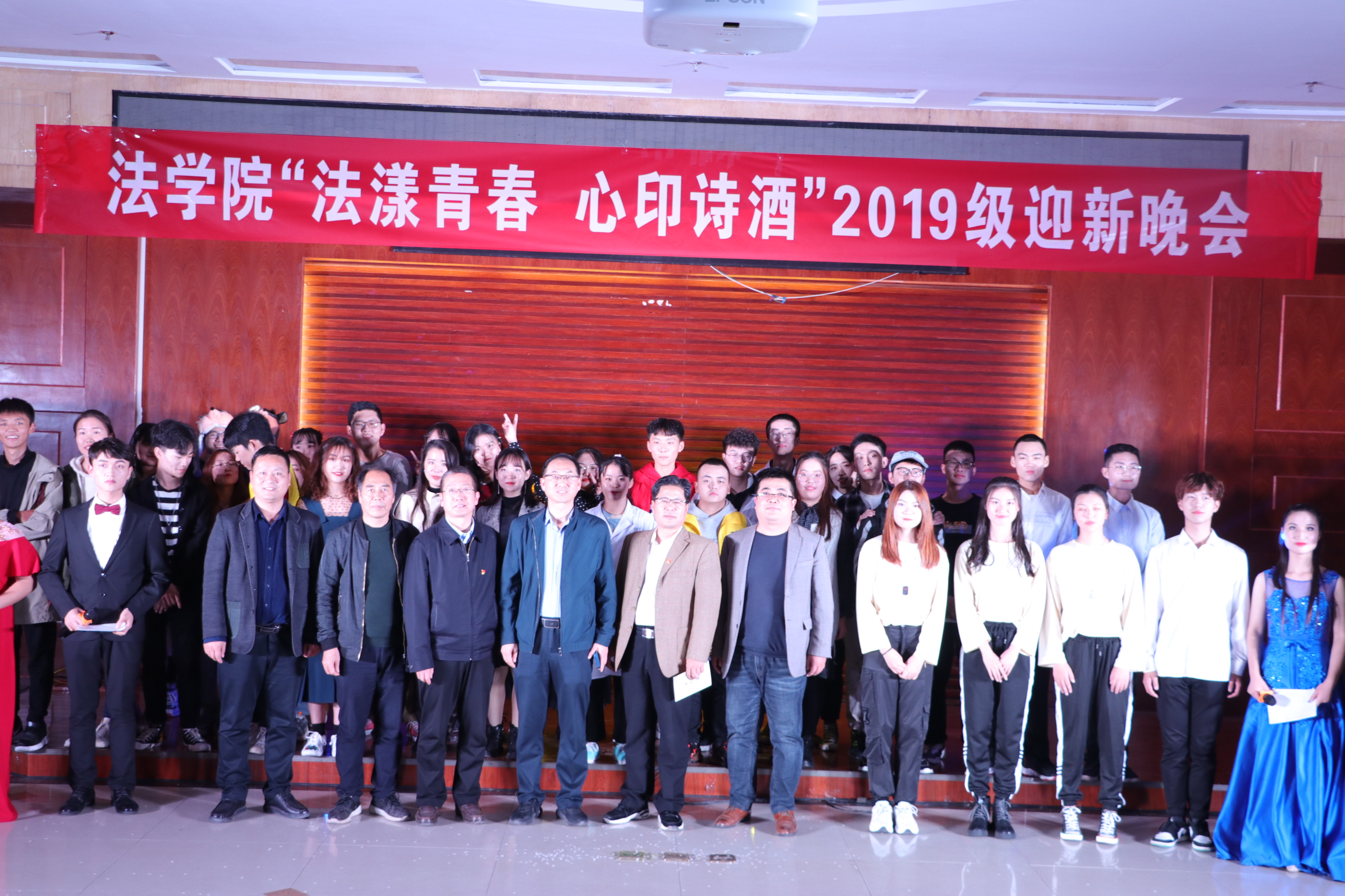 11月7日晚,法学院“法漾青春,心印诗酒”迎新晚会在模拟法庭举行,法学院党委书记任永利、院长王鹏祥、党委副书记葛照金、副院长韦留柱、于庆生、张震、全体专兼职辅导员及2019级全体学生到场观看了此次晚会。