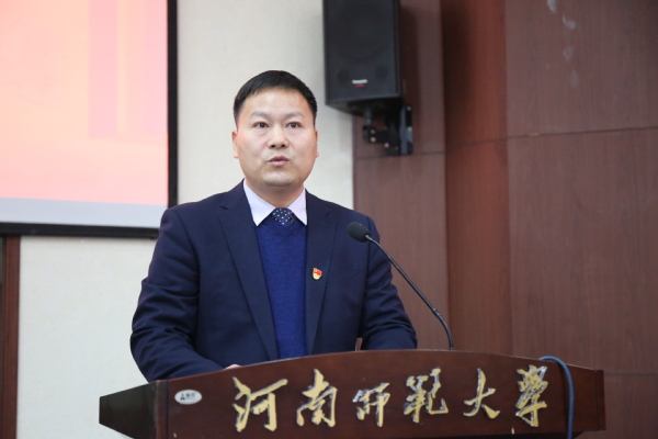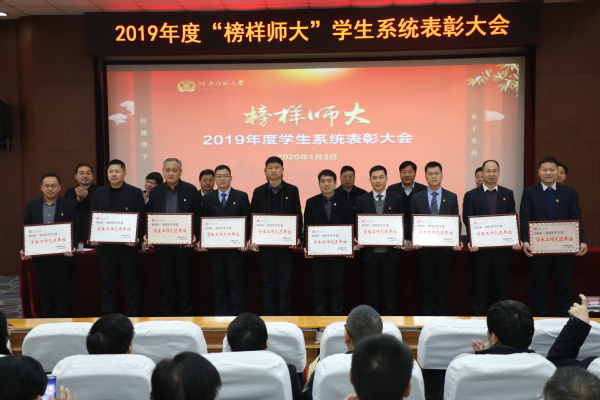 1月3日上午,我校2019年度“榜样师大”学生系统表彰大会在物理北楼举行。全体校领导、各职能部门负责人、各学院党委书记、院长、党委副书记、辅导员和获奖代表参加了本次大会。我院荣获2018-2019学年度学生工作考评第一名,学院党委副书记葛照金代表学生工作先进单位在大会上发言。