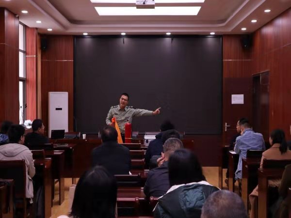 会上,新乡市消安防火宣传中心教官担任主讲人,以消防知识与自救常识两大模块为中心,以科学知识和专业数据为支撑,通过幻灯片展示和现场演练消防设备进行详细讲解,将具体的安全知识传递给在场观众。他指出,在疫情防控常态化背景下,做好消防安全工作尤为重要,要强化政治意识和责任意识,坚持“安全第一、预防为主”的原则,切实把消防安全隐患消灭在萌芽状态,并围绕起火原因及防火措施,以办公室、家庭住宅和学生宿舍三个消防事故多发场所为例,对火灾发生地点的不同进行了深入分析。此外,针对个人自救常识,主讲人通过列举甲醛、一氧化碳和氯化氢等气体对人体造成的伤害,阐述火灾发生过程中致人死亡的原因,强调了防止有毒气体进入体内的重要性,同时结合日常生活中的实例,提出了一些操作性、实用性较强的自救措施。会议最后,灭火器、灭火毯和防毒面罩等消防安全设备的全方位演示,使“隐患险于明火,防范胜于救灾,责任重于泰山”的消防安全观念深入人心。