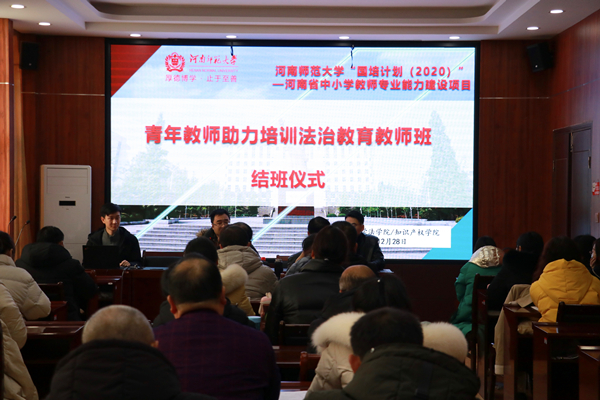 12月28日上午,由法学院承办的“国培计划(2020)”——河南省中小学教师专业能力建设项目青年教师助力培训法治教育教师班在崇法楼学术报告厅举行结班仪式。法学院副院长胡光、国培计划负责人董传举、陈宇翔及全体培训学员参加了此次仪式。