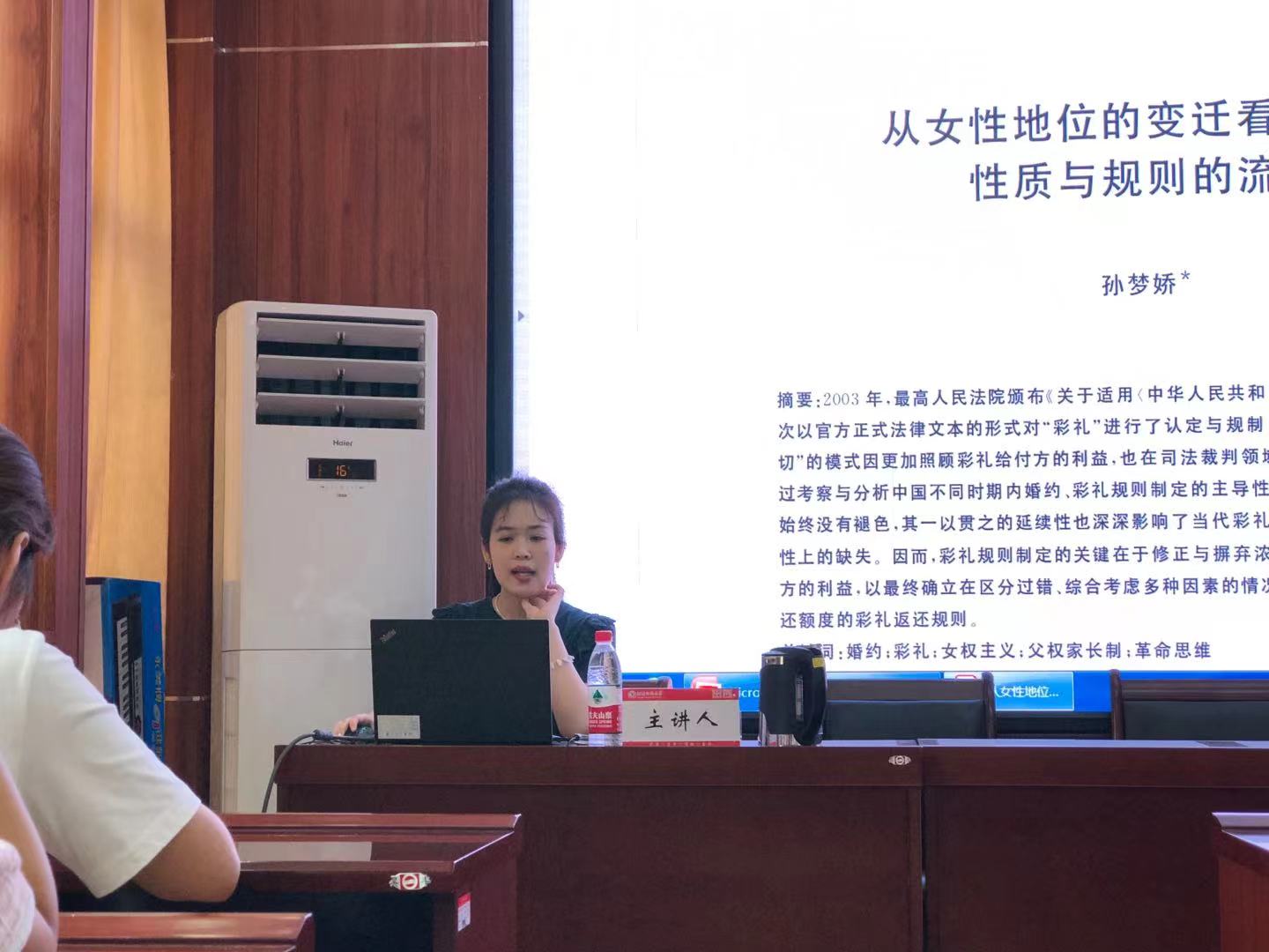 6月8日上午,我院在崇法楼301教室举办了第【21060810】期研究生学术沙龙活动,法学院孙梦娇老师做了关于“陕甘宁边区的婚姻改革实践研究”的专题讲座,70余名研究生参与了此次学术沙龙活动。